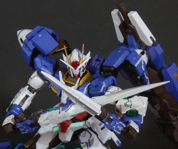 - GN Katars: queste due lame verdeggianti vanno montate nelle apposite ginocchiere, che a loro volta si agganciano alle gambe del mecha mutandone profondamente il motivo estetico degli altrimenti monocromatici arti inferiori (quasi completamente bianchi). Una volta staccate dal supporto, per inserirle nella coppia di mani dedicate si deve prima estrarne l’impugnatura.