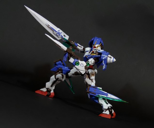 Quando estrarrete il vostro Gundam dal suo sarcofago di polistirolo, lo troverete in modalità “00” classica, ovvero privo di quelle armi con relativi supporti che ne caratterizzano la variante “Seven Sword”. Essa prevede l’equipaggiamento con i seguenti strumenti bellici: