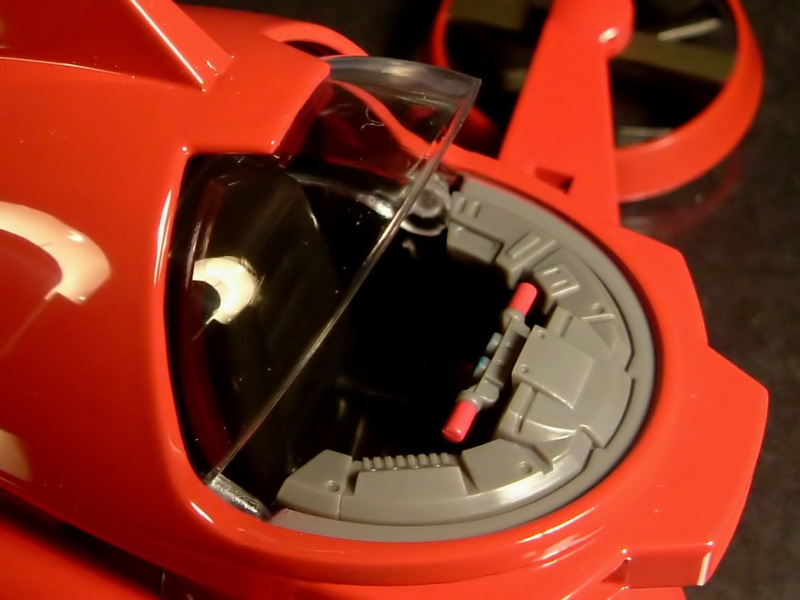 tutte variazioni chiaramente fattibili senza stravolgere lo stampo originario, cosa che invece si sarebbe resa necessaria se davvero si fosse voluto produrre un pilder assolutamente fedele a quello del nuovo anime modificando a dovere la parte posteriore del velivolo, privo di quella griglia che aveva nella serie classica e che è stata deludentemente lasciata in questo px-04.Insomma, il modello è anche fedele al nuovo cartone, basta non guardargli le terga, ma alla fin fine si è prodotto un ibrido tra le due versioni che non è ne' carne ne' pesce sacrificando il soggetto sull'altare del riciclo in nome del Dio denaro con la produzione di un clamoroso falso storico.Il meccanismo di chiusura delle ali è stato mantenuto invariato conservando la solita levetta sulla pancia dell'aliante. La plancia di comando si caratterizza per un manubrio diverso (tipo moto in questo caso, più o meno come nel Kaiser Pilder di Mazinkaiser) ma soprattutto per una minore cura dei particolari (a parte le impugnature il resto dei dettagli è stato lasciato senza un tocco di vernice, una cosa imparagonabile al bel cruscotto ricco di tasti colorati tipico del px-01).La figurina di Koji, alta 6 cm circa, è stata se possibile peggiorata anch'essa con una verniciatura più approssimativa e una posizione quasi innaturale degli avambracci complice la necessità di impugnare i comandi del velivolo in modo diverso rispetto alla versione classica. E' snodata a livello di collo, spalle, gomiti, anche e ginocchia.In conclusione il prodotto non è brutto, perchè comunque è stato sfornato partendo da uno stampo ad ogni modo valido, e dà comunque la possibilità a tutti coloro che non potendo permettersi di comprare il px-01 (complici gli alti prezzi raggiunti) vogliono mettersi in collezione un Hover Pilder senza spendere un capitale, ma lascia l'amaro in bocca per il riciclo spudorato del soggetto e l'ibrido che ne è derivato. Consiglio quindi l'acquisto a prezzo ragionevole (entro i 60 euro tutto compreso lo si può trovare) a chi non ne possedesse la versione classica (le differenze sono così limitate che non giustificano il gap di prezzo tra le 2 versioni), in caso contrario tenetevi stretto il vostro px-01 che continua a rimanere un prodotto superiore. Ci ribecchiamo presto, continuate a seguirci! Un caro saluto da Stefano-Mazingetter.
