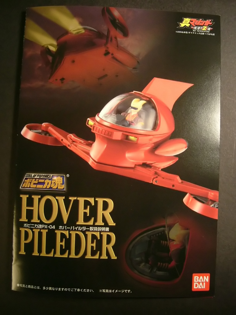 Con la nuova serie anime in uscita e la produzione del gx-45 Mazinger Z, Bandai torna a sorpresa a ridare nuova linfa vitale ad una serie di modelli che da anni in molti avevano dato per defunta, la Soul Of Popynica, specificamente ispirata ai vari mezzi locomotori tipici delle diverse serie anime e in cui il colosso giapponese ha inserito con un codice nuovo di zecca (px-04) un soggetto che in realtà di nuovo ha ben poco, e cioè l'Hover Pilder, riprodotto in questa occasione con i colori e le sembianze che lo caratterizzano nel nuovo anime. In realtà, come più avanti vedremo, si è trattato di un modo neanche troppo elegante per raggranellare qualche altro quattrino apportando minime ed insufficienti modifiche ad uno stampo che già era disponibile con il px-01. Ma andiamo a vedere nel dettaglio gli aspetti salienti di questo modello......