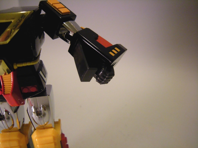 Per quanto riguarda l'estrazione dei pugni, é stato studiato un sistema simile a quello del Gyakuten-Oh. In questo caso le braccia sono dotate di un solo pannello mobile - rivolto verso l'interno - e aprendolo é possibile ruotare lo snodo a sfera del polso ed estrarre il pugno. Per quanto riguarda le mani opzionali, sono le stesse identiche del Gyakuten, sia come posizione che come numero: due pugni chiusi, due mani prensili, due mani aperte e una mano destra per afferrare un'arma da fuoco. Nel modello in oggetto anche i pugni chiusi sono contenuti nel blister a parte. Si conferma la poca funzionalità delle mani prensili, tanto che si consiglia di utilizzare la mano sagomata per il fucile anche per il Tomahawk.