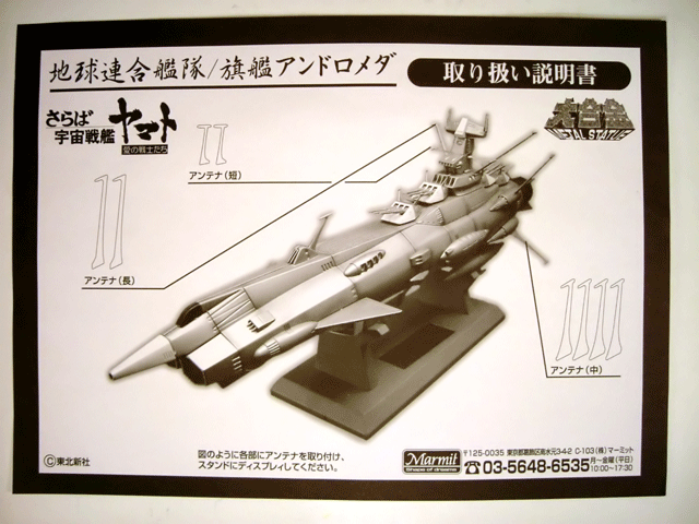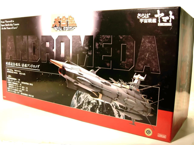 Nell'estate del 2007 Marmit annunciava, con la pubblicazione delle relative foto, il quinto soggetto della serie Daigokin sorprendendo tutti per la singolarità e l'originalità della scelta fatta. Se infatti i precedenti giganti di metallo prodotti da Marmit erano stati i 3 robot della santissima trinità nagaiana (Mazinger Z, Great Mazinger e Grendizer), con il Daigokin numero 5 la casa nipponica ha dato un netto cambio di direzione a quella serie di modelli che nel nostro settore vengono considerati come le Ferrari del collezionismo producendo non un robot ma una astronave. Stiamo parlando della bellissima nave spaziale Andromeda, che può essere ammirata nel film Farewell to space battleship Yamato: in the name of love, e nella seconda serie, in 26 episodi come la prima, risalente al 1978 e preceduta dal suddetto film, in cui compare come antagonista della Yamato stessa rappresentando una nuova generazione di navi spaziali da combattimento in procinto di mandare in pensione il buon vecchio Argo, mestamente destinato allo smantellamento. Il film andrà poi incontro a uno sviluppo della trama tale per cui la space battleship Yamato tornerà ad essere la protagonista a tutti gli effetti svolgendo un ruolo di primo piano nella difesa della terra. Ebbene, dopo innumerevoli rinvii dell'uscita (legati, sembra, a poblemi di stampo) ed un ritardo di più di un anno, nel novembre del 2008 ho finalmente potuto soddisfare i miei desideri acquistando questa stupenda riproduzione in scala di una delle mie navi spaziali preferite, di seguito vi vado ad elencare le impressioni suscitatemi da questo oggetto.