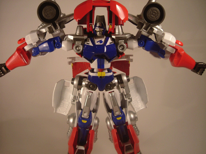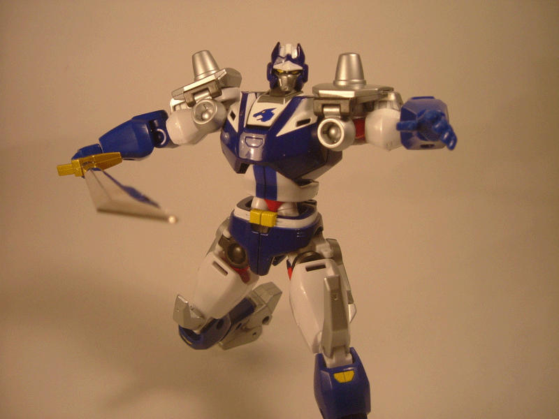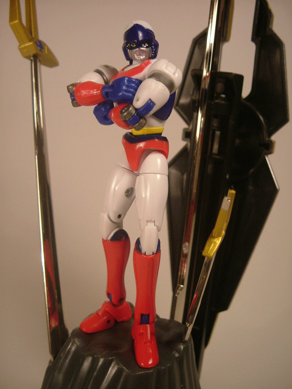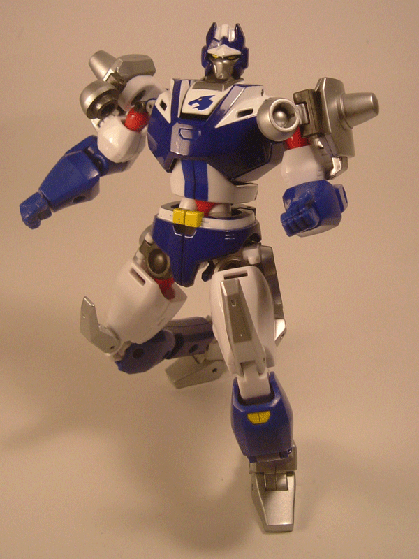 Anche assemblato Baikanfu ha una posabilità invidiabile, garantita dallo snodo sulla schiena, dalla grande mobilità delle caviglie e dal piede flessibile. Se una critica va mossa è certamente per i pugni del Baikanfu, un po' troppo instabili sui loro perni anche se a detta di alcuni dipende da come vengono applicati. Io ci ho provato in più di un modo anche facendo forza ma il risultato è sempre stato lo stesso, cascano un po' troppo facilmente maneggiandolo (non che non si tengano su ma si poteva fare di meglio). Il robot diventa ancora più posabile se invece del Kenryu introduciamo nel Baikanfu la apposita dummy part che riproduce il tronco del Kenryu stesso limitando in minor misura le escursioni di alcune articolazioni cruciali come quella della spalla e quella dell'anca.