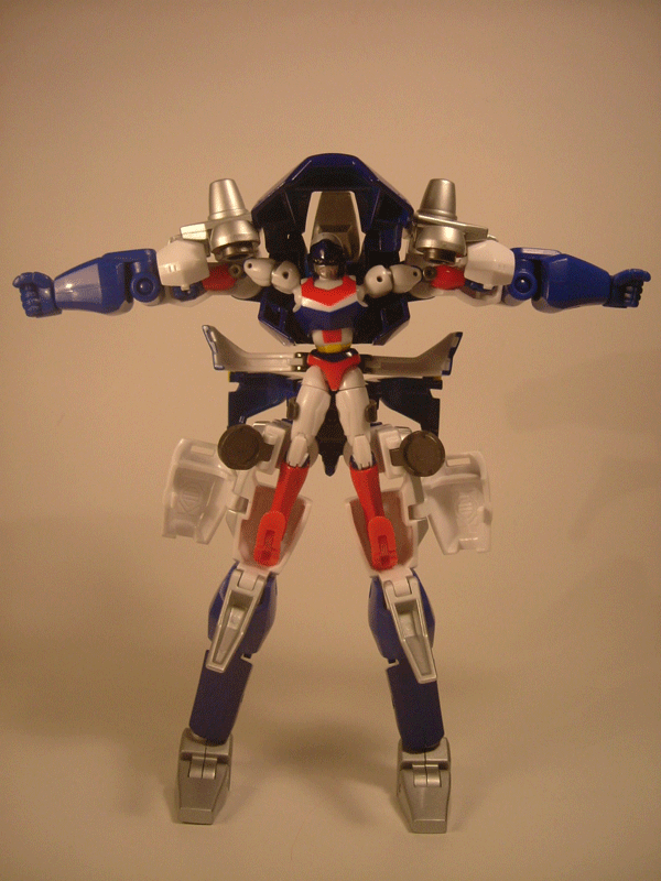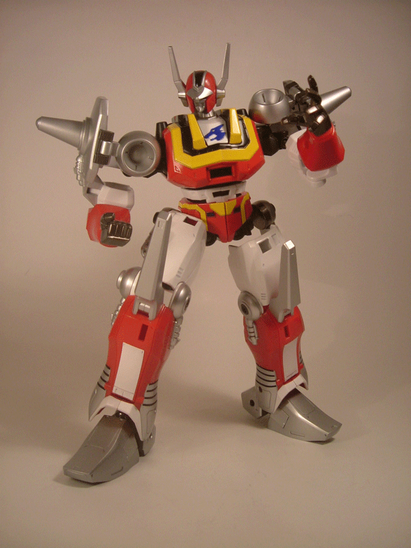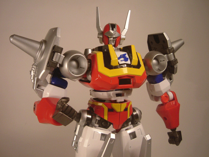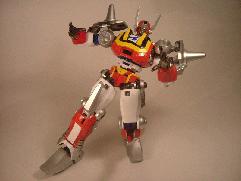 E' il robot in cui si va ad alloggiare Rom nell'assemblamento di Baikanfu. Soppesandolo si ha una rassicurante sensazione di pesantezza essendo quasi interamente in metallo. L'alloggiamento di Rom al suo interno è assai semplice, è sufficiente e aggiungerei indispensabile (pena una chiusura imperfetta degli alloggiamenti se non addirittura rotture in caso contrario) rispettare i punti di aggancio indicati dal libretto di istruzioni che in questo senso è chiarissimo. Kenryu ha in dotazione una spada, 4 paia di mani intercambiabili e uno scudo. Anche una volta inserito al suo interno Rom, Kenryu conserva una posabilità invidiabile come testimoniano le foto.