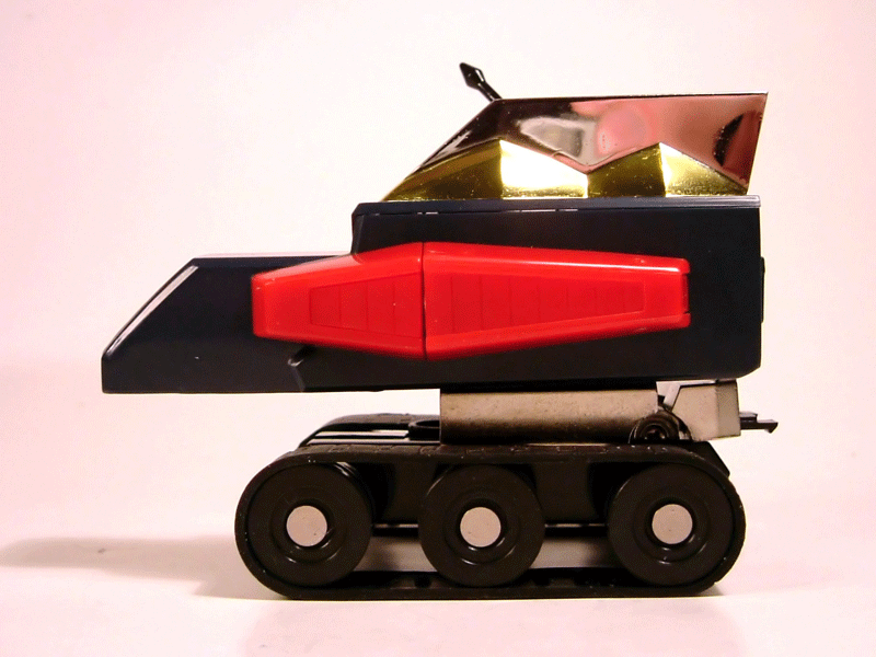 - Il contenitore in polistirolo all'interno del quale abbiamo alloggiati: le tre parti del robot in conformazione già pronta all'agganciamento, lo scudo, due pulse saber (spade a impulsi), un paio di cannoni laser, un paio di lame per simulare l'estrazione delle spade dai foderi, i cingoli applicabili al Cater Ranger, la miniatura di una navetta di Aldebaran (così venivano chiamati nella serie i caccia nemici), un'altra arma non meglio precisata ed i classici tappini coprivite di cui CM'S correda sempre i suoi Brave Gohkin.