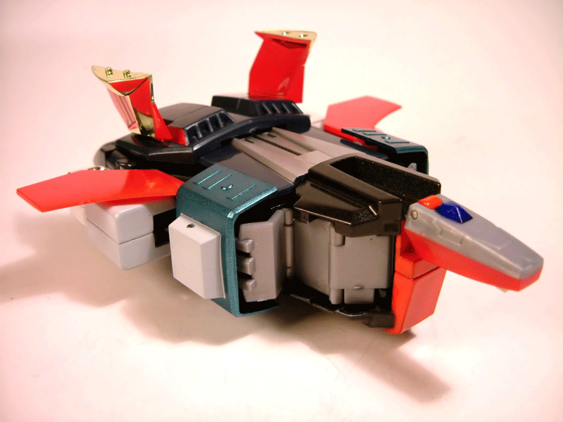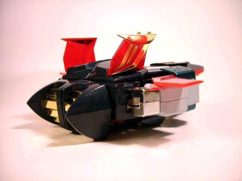 Premesso che lo avrei gradito più alto di almeno 2-3 cm partiamo subito col dire che questo Baldios non è poi quel nanetto che poteva sembrare a giudicare dalle prime foto, più precisamente il modello una volta assemblato misura all'incirca 19 cm, una altezza quindi contenuta per un componibile, ma comunque non è piccolissimo.Il peso è effettivamente modesto, 300 grammi tondi tondi, meno quindi di un semplice gx-01r nonostante l'altezza sia superiore. Tale peso è ovviamente condizionato da esigenze di trasformabilità, le gambe infatti sono cave per permettere l'estrazione con sistema telescopico delle restanti componenti dei mezzi che formano le gambe del robot. Le parti in metallo sono i piedi, le cosce, una piccola parte del tronco e le braccia; sono invece in plastica le gambe con i relativi inserti, gran parte del tronco, gli avambracci e la testa. La posabilità del robot purtroppo non è il massimo. Complice la bizzarra trasformazione che nell'anime caratterizza il mecha i piedi di questo modello di fatto non hanno uno snodo dal momento che non si articolano alla gamba ma restano ancorati ad essa tramite gli inserti rossi laterali rispetto ai quali hanno solo un modestissimo movimento di rotazione; le caviglie di fatto sono bloccate o quasi e in pratica non si piegano. I piedi, per effetto della modalità di trasformazione, non hanno una pianta e da sotto sono aperti. Ciò che veramente mi ha infastidito è stata la mancanza di un paio di semplicissimi tappi per la chiusura della pianta del piede, cosa fattibilissima cui CM'S non ha provveduto denotando una cura dei dettagli a dir poco modesta. Le ginocchia si piegano discretamente ma per l'asimmetricità della trasformazione lasciano intravedere dettagli diversi, se volete un consiglio è preferibile flettere il ginocchio destro dal momento che piegando il sinistro si intravede uno dei cingoli a scomparsa del Cater Ranger, effetto esteticamente osceno. Esteticamente discutibili anche le grosse cerniere che fanno bella mostra di se sulla superficie interna della cosce, una maggior miniaturizzazione sarebbe stata cosa certamente gradita da molti. Alle anche le cosce hanno possibilità di allargarsi molto ma per effetto della strampalata progettazione di questo aggancio se si abducono eccesivamente fuoriescono dal loro alloggiamento e le si devono reinserire. Il modo in cui è stato concepito l'aggancio dei 3 moduli è infatti forse il punto peggiore dell'intero modello, di fatto le cosce si attaccano al bacino tramite due pernetti a molla che si ingranano in un alloggiamento anch'esso in plastica ancorato alle paratie che costituiscono la parte laterale del bacino, roba da brividi. Ogni volta che ho agganciato e sganciato le gambe ho temuto di spaccare tutto quanto e l'insieme da comunque una sinistra sensazione di fragilità sulla base della quale il mio consiglio è quello di effettuare la manovra il meno possibile; in altre parole assemblate i vostri mezzi, guardateveli, fatevi le vostre considerazioni dopo di che eseguite la trasformazione in robot e non toccate più nulla. Purtroppo l'instabilità dell'anca e la fuoriuscita delle cosce dal proprio alloggiamento quando le si allarga troppo non sono l'unico aspetto "instabile" del modello nel quale, quando lo si maneggia è facile vedersi aprire il petto o spuntare le ali del Pulser Burn dai margini laterali del torace data la più totale mancanza di fermi per queste parti. Le spalle hanno invece una grandissima mobilità (sia in rotazione che in abduzione) dettata dalle esigenze di trasformazione in Pulser Burn e rappresentano l'unica articolazione a scatto del modello. Le braccia ruotano rispetto alle spalle e gli avambracci si flettono a 90 gradi. Altra nota dolente sono le mani. Ci lamentiamo degli ultimi gx perchè poveri in mani di ricambio ma CM'S è riuscita a fare peggio di Bandai dotando questo Baldios di un solo paio di mani con pollice fisso e restanti dita articolate. Anche la dotazione in accessori non è certo delle migliori ma a onor del vero bisogna ammettere che ben poche erano le armi che il robot usava nel cartone essendo principalmente rappresentate dalla spada a impulsi e dai cannoni laser sulle spalle (qui applicabili rimuovendo la copertura dorata di queste ultime). Il caccia nemico, minuscolo e di plastichina traslucida, simile a una razza, era peraltro evitabile non aggiungendo alcun valore al modello. I colori usati mi piacciono tanto e trovo molto bello l'accostamento del rosso e del dorato che considero migliore del giallo il quale, a mio avviso, avrebbe trasmesso una sgradevole sensazione di giocattolino. Il blu è effettivamente molto scuro, ma indipendentemente dalle critiche mosse non si allontana molto dal colore che caratterizza il Baldios nell'anime, anch'esso molto scuro. Quindi a mio avviso i colori usati sono belli, ciò che invece è veramente eccessiva è la presenza di innumerevoli segni di distacco dalle sprue delle varie parti che qua e là spiccano un po' ovunque sul modello. Detto del Baldios passiamo ai mezzi.La trasformazione è semplice e divertente nella sua esecuzione e ingegneristicamente valida. Ho molto apprezzato il sistema telescopico per l'estrazione di parti sia del Baldy Prize che del Cater Ranger, così come la presenza di parti a scomparsa (leggi i cingoli del Cater Ranger). Il progetto di base è quindi a mio avviso buono,ciò in cui CM'S è invece clamorosamente mancata sono i dettagli finali per cui dopo aver apprezzato la tecnica impiegata nella trasformazione ci si trova di fronte a mezzi che fanno della instabilità più totale la loro caratteristica principale. Nel Pulser Burn le ali non hanno punti di blocco per cui basta un minimo spostamento perchè queste si discostino da quella che dovrebbe essere la loro sede normale. Nel Baldy Prize spesso la punta del piede tende ad alzarsi avendo difficoltà ad agganciarsi al sottostante alloggiamento e le ali sono formate da 4 elementi articolati tra loro che si 