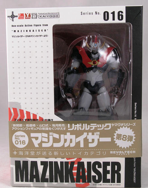 Uscito tra i Revoltech di prima generazione (è il numero 16 della collana ormai celebre della Kaiyodo), il Mazinkaiser costituisce uno dei modellini più noti e ricercati di questa serie. Alto circa 11 centimetri, completamente in PVC, questa action figure presenta un livello di dettaglio apprezzabile, considrando le dimensioni, e una appropriata colorazione. Come tutti modellini Revoltech si caratterizza per i numerosi punti di snodo( collo, spalle,