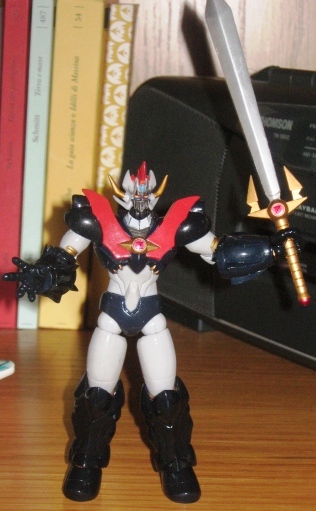 braccia, gomiti, mani, busto, attaccatura delle gambe, giunture delle ginocchia, piedi) e per un corredo di accessori di tutto rispetto (mani aperte, mani a pugno, mani per tenere le spade, due Kaiser blade piccole, una Kaiser blade grande, lo scrander, una piattaforma nera con protesi per simulare le fasi di volo o sospensione in aria).La confezione è di dimensioni contenute (19x14x9 cm), tranne che per la profondità, cosa dovuta al fatto che, all’interno della scatola, troviamo due scomparti di plastica trasparente sovrapposti, nel primo dei quali è alloggiato il modellino( con accanto la spada grande), mentre nel secondo si colloca lo scrander. Il resto degli accessori è contenuto, invece, in una bustina sigillata trasparente, alloggiata sotto la parte cava del secondo scomparto in plastica.Mentre il modellino in sé, data la forma massiccia del robot, si presenta sufficientemente compatto e maneggiabile senza problemi, più delicate sembrano le spade e lo scrander, che danno l’idea di potersi rompere facilmente se maneggiati grossolanamente. Alcuni punti di snodo, inoltre, se sollecitati eccessivamente potrebbero tendere ad allentarsi soprattutto per quanto riguarda le braccia.La figure, però, è sicuramente d’effetto per le pose che permette, e, per chi preferisce il modellini di dimensioni più piccole, è certamente un must, vista anche la rilevanza del personaggio. Nel suo genere di dimensioni, infatti, il Mazinkaiser Revoltech non ha praticamente una concorrenza seria: esistono solo due trading figure-gashapon Bandai, entrambi però non articolati (uno uscito per una delle serie Best Posing e l’altro in una serie dedicata agli OVA di Devilman e Mazinkaiser) e una figure in posa fissa con basetta della Banpresto; l’unico prodotto che gli si avvicina davvero è una action figure della serie Banpresto Super Robot Wars, mini kit componibili, articolata, ma uscita circa 10 anni fa, peraltro da colorare (non so se esiste anche la versione già colorata) e davvero estremamente rara da rintracciare, non solo in Italia.Va segnalato che questo Mazinkaiser Revoltech è stato prodotto anche in una versione limitata completamente nera, che però è costosa (sui 90 euro). In conclusione, qualche considerazione sui prezzi: il Mazinkaiser Revoltech che, ai tempi dell’uscita nel 2007, si trovava agevolmente tra i 20 e i 25 euro, oggi, diventato di meno agevole reperimento, è uno dei Revoltech che si è valorizzato di più assieme al Black Getter e, nei negozi, tende a collocarsi anche dai 50 euro in su, cosa che ovviamente lo rende meno appetibile. Quindi,