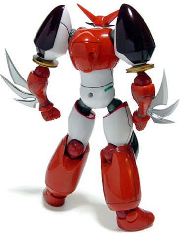 Tra i Revoltech di prima generazione (è il numero 37 della collana della Kaiyodo), lo Shin Getter1 è, probabilmente, uno dei più belli e meglio riusciti dal punto di vista della resa estetica. Leggermente più alto della media di questa serie, siamo sui 13 centimetri, completamente in PVC, questa action figure, come tutti modellini Revoltech, presenta numerosi punti di snodo(collo, spalle, braccia, gomiti, mani, busto, attaccatura delle gambe, giunture delle ginocchia, piedi) e si distingue per la coloratura lucente che valorizza le tonalità del rosso e del verde del robot. Ottimamente organizzato è anche il