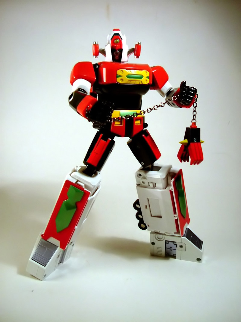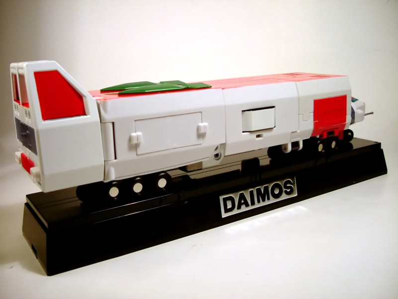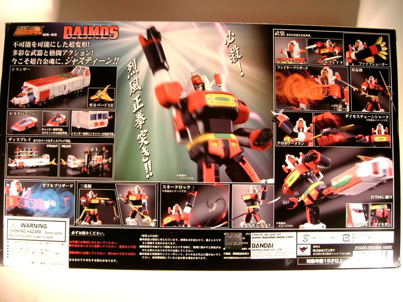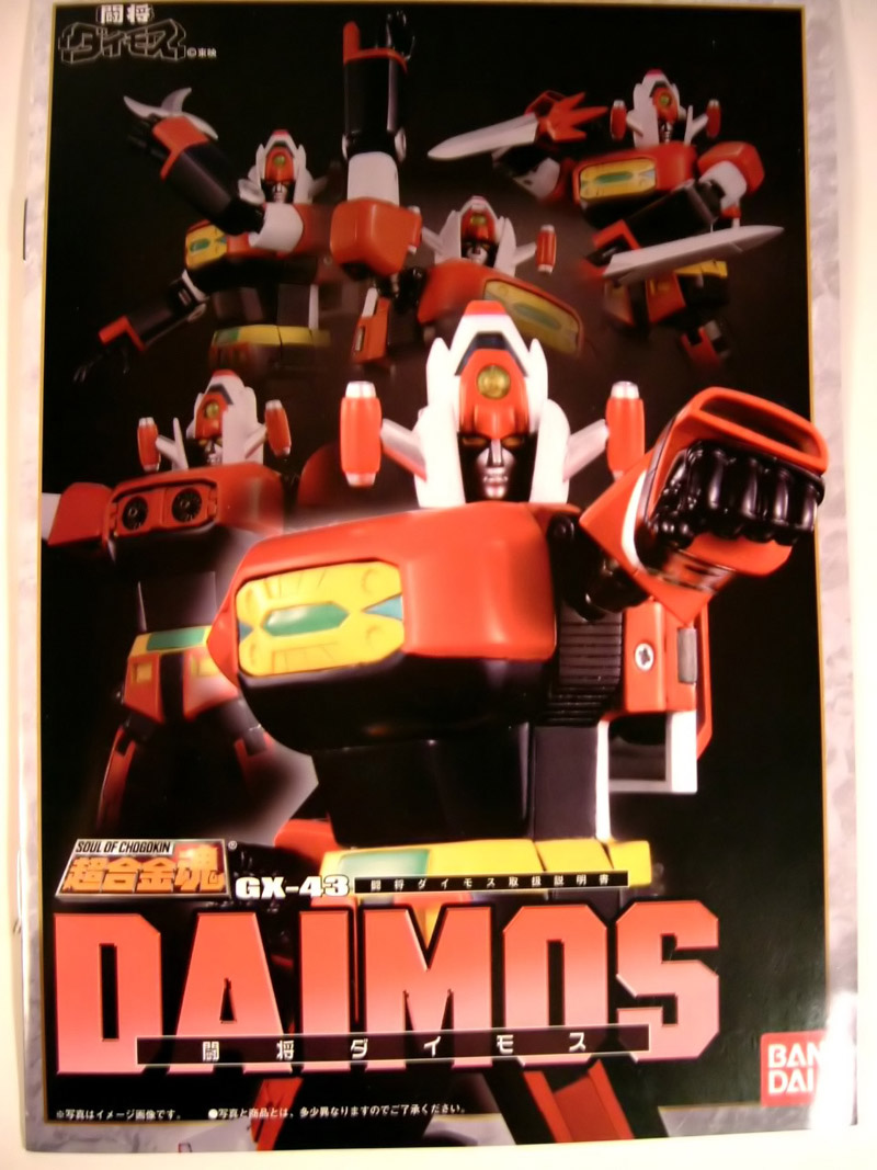 Just iiiiin!!! A questo grido la fine di settembre 2008 ci regala il quarantatreesimo soggetto della serie Soul Of Chogokin. Come avrete capito trattasi del famoso Tosho Daimos, da noi meglio conosciuto più semplicemente come Daimos o General Daimos, serie Toei-Sunrise in 44 episodi trasmessa in Giappone tra il primo Aprile 1978 ed il 27 Gennaio 1979 che va a completare una ideale trilogia aggiungendosi ai due precedenti Chodenji Robo Combattler V e Chodenji Machine Voltes V. Daimos, che deve il suo nome a una delle due lune di Marte, narra quindi la storia dell'omonimo super robot trasformabile nel camion Trancer e pilotato da Kazuya Ryuzaki deputato a proteggere la terra dagli alieni del pianeta Baam che intendono conquistarla.Tra i soc più attesi in madre patria, questo Daimos ha in parte risollevato le sorti di Bandai dopo la a mio avviso opaca prova del gx-42 Koutetsu Shin Jeeg. Come più avanti vedremo nel corso della recensione anche in questo caso sono però presenti alcuni punti d'ombra che stonano non poco soprattutto dovendo constatare come in assenza di essi il modello avrebbe raggiunto l'eccellenza assoluta. Ma andiamo per ordine..........