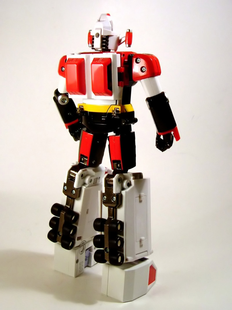 Daimos ha un'altezza di circa 23 cm per un peso pari a 614 grammi, non poco considerato che per esigenze di trasformabilità il modello è quasi completamente cavo. E' piacevole la sensazione di pesantezza che trasmette quando lo si estrae dal suo alloggiamento indicando come anche questa volta Bandai non si sia risparmiata quanto a contenuto in metallo del modello. E' altresì curioso constatare come, a fronte di una tale pesantezza, quasi tutte le parti esposte del robot, fatta eccezione per i piedi e poco altro, siano praticamente in plastica lasciando intuire la similitudine strutturale tra questo soc ed il precedente gx-34 GunBuster, anch'esso concepito con rivestimenti per gran parte in plastica e struttura portante in metallo. Si tratta ad ogni modo dimateriali di ottima qualità, tanto il metallo quanto le plastiche, che dimostrano una certa resistenza.Nel Daimos molto del peso si concentra, presumibilmente per ragioni di stabilità, a livello degli arti inferiori. Riguardo a questi ultimi partiamo subito col dire che quello che è il difetto più marchiano che è stato evidenziato sin dall'inizio e riscontrabile nelle varie foto reperibili in rete, e cioè le gambe grosse, dal vivo è certamente meno evidente anche se, per questioni di stabilità, i piedi del robot risultano sicuramente molto grandi, anche dal vivo. La trasformazione in Trancer non è difficile, ma deve comunque essere effettuata con attenzione seguendo scrupolosamente i passaggi indicati dalla guida soprattutto per evitare di forzare a livello di alcuni passaggi. Il timore principale infatti, se la trasformazione non viene praticata con la dovuta cautela, è quello che la vernice del robot in corrispondenza della superficie anteriore del bacino, rischi di venire raschiata quando si ricopre questa zona con i pannelli che costituiscono la parte intermedia del Trancer e che vengono estratti dall'interno della gamba. In tal senso è fondamentale che tali pannelli vengano ben assicurati a quelli dell'ultima parte del camion mettendoli così sullo stesso piano facendogli fare un piccolo scatto che li blocca assicurandoli a questi ultimi e li alza di quel millimetro che permette di evitare contatti pericolosi col bacino. Il lavoro tecnico svolto dagli ingegneri Bandai questa volta ha dell'incredibile, basti pensare come nella conversione in Trancer sia stato studiato un sistema per cui le braccia del robot si vanno ad alloggiare all'interno delle gambe, idea geniale, anche se assolutamente non calzante al modo in cui la trasformazione si verifica nell'anime.Personalmente ho dovuto forzare un pochetto per chiudere le gambe del robot nella conversione a camion, eciò nonostante che avessi seguito passo a passo le indicazioni del libretto e fatto combaciare alla perfezione gli alloggiamenti come indicato dalla guida. Consiglio, per ridurre l'ingombro sterico e favorire la chiusura deipannelli delle gambe, di rimuovere prima della trasformazione i pugni dal robot allo scopo di garantire maggiorspazio nell'alloggiamento per le braccia. Uno dei miei principali timori prima di ricevere il modello era relativo alla resistenza delle cerniere laterali cui le braccia si attaccano e che consentono la loro traslazione nelle gambe, timori che si sono dissolti dopo averne constatato la solidità e il robusto aggancio alle braccia stessee al bacino nonchè la composizione in solido metallo. La motrice del Trancer in modalità robot può essere lasciata nella scatola o agganciata e lasciata nell'alloggiamento all'interno del torace del Daimos, cosa che sconsiglio dal momento che lo spazio a questo livello è assai esiguo e che le due antenne su di essa essendo in gomma morbida tendono, se la motrice viene lasciata in tale sede, a piegarsi. E' pur sempre vero che la stessa cosa si verifica anche nell'alloggiamento in cui all'interno della scatola la motrice è riposta per effetto dello stazionamento nel relativo sacchettino di plastica, non meravigliatevi quindi se estraendola dovrete constatare come le due antenne siano storte, il difetto è veniale e piegandole per un pochino in senso opposto tenderanno a recuperare il loro normale aspetto rettilineo.Modello quindi molto bello in modalità camion in cui carino è l'alloggiamento apribile sul retro per simulare l'ingresso al suo interno del Triper, ma penso che pochissimi lo esporranno in questa modalità, anche perchè il gx-43 dà il meglio di se soprattutto in versione robot.La verniciatura è generalmente buona ma ci sono alcuni difetti, principalmente all'interno dei piedi (cosache non si nota nel robot quando queste parti vengono ad essere ricoperte dalle apposite paratie) e, almeno nel mio esemplare, sulla superficie rossa dei pannelli che formano la parte intermedia del camion (difetto anche questo apprezzabile solo nel Trancer e non nel Daimos, quando tali pannelli rimangono nascosti alla vista perchè ripiegati all'interno della gamba). La posabilità sarebbe potenzialmente notevole anche se in parte le soluzioni tecniche adottate mi hanno lasciato l'amaro in bocca. Prima di tutto il ginocchio, ideato in modo da permettere l'estrazione dei pannelli dall'interno della gamba, ha il perno nella parte posteriore per cui nella flessione dell'articolazione tende a rimanere "vuoto", e l'effetto, visivamente orrendo, tende ad essere tanto più brutto quanto più marcata è l'escursione dell'articolazione. Personalmente nelle pose che darò al mio Daimoscercherò quindi assai accuratamente di non piegare troppo le ginocchia onde evitare questo risultato esteticamente molto discutibile. In altre parole questa articolazione è limitata, non strutturale ma in senso puramente estetico. In seconda analisi, e per quelli che sono i requisiti di mobilità e posabilità che cerco in un modello è forse questo il limite maggiore, le articolazioni delle caviglie hanno escursioni limitate e si inclinano poco. Tali articolazioni, che in modalità camion si bloccano spingendo in alto, sono ad attr