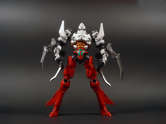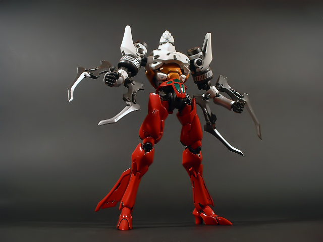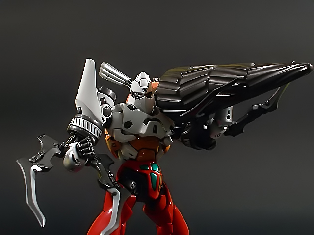 Sicuramente questa serie EX GOKIN si differenzia per il grande impatto scenico dei suoi modelli, come per il Getter Black ed il Getter 1, anche il Getter Robot 2 fa strabuzzare gli occhi per la bellezza estetica donatagli dal suo creatore Taku Roboshi Sato! Lo stile di questo modello è davvero qualche cosa di assolutamente unico e spettacolare sotto ogni punto di vista, a mio parere è la giusta reinterpretazione del disegno originale, non lo stravolge completamente, ma ne accentua le forme e ne esalta la dinamicità rendendolo probabilmente il più bello del trio Getter Fewture! Dobbiamo però ancora fare i conti con una tecnica realizzativa da brivido, come tutti ormai sapete, le parti metalliche sono incollate al corpo in plastica, scelta che si è rivelata davvero poco felice! Il disastro del Getter 1 fortunatamente non si è ripetuto su questo modello, ma comunque si sono avute notizie di esemplari danneggiati già dentro alle confezioni, un nostro carissimo amico del forum MR, Pupalina 2000 detto o Mister Fewture…ciao Ste……. ci ha mostrato una delle sue copie del Getter 2 troncato a metà! Questo sta ad indicare un’altra cosa, oltre alla poca cura in fase di assemblaggio si aggiunge anche l’incuria più totale della fase d’imballo finale del prodotto, gli spazzi degli alloggiamenti sono precisi e pigiando il modello avvolto dalla plastica protettiva probabilmente alcuni esemplari si sono irrimediabilmente danneggiati! Dobbiamo però osservare che l’aspetto più longilineo di questo Getter 2 ha di fatto limitato la problematica che affligge i due prodotti precedenti, il peso eccessivo delle gambe rispetto al resto del corpo, in questo modello il perno centrale del busto è stato concepito in maniera diversa, quindi non si corre nessun rischio nel sollevare il modello prendendolo per la parte superiore del busto.
