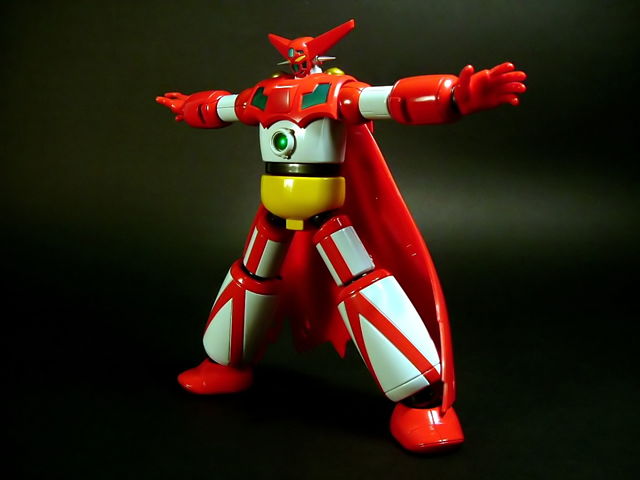 e presentano una buona mobilità. Il collo ha due punti di snodo, uno all'aggancio con lapettorina, l'altro all'attacco con la testa. La testa ruota liberamente a 360 gradi, ha una buona flessione ed una modesta estensione con una ottima flessione laterale. Il mantello può essere applicato abbastanza agevolmente agganciandolo nell'alloggiamento localizzato sotto alla pettorina. E' in plastica rigida e soffre di una certa instabilità se non lo si fissa a fondo. Personalmete si fa preferire a quello che correda il getter 1 Aoshima in gomma morbida e che, a mio modo di vedere, è sin troppo corto. Per quanto riguarda gli altri accessori e in particolar modo i fucili c'è da dire che fa finalmente piacere poter mettere in collezione un getter 1 OAV in grado di impugnarli mantenendoli paralleli all'avambraccio, cosa praticamente impossibile per come questi erano stati concepiti nel modello Aoshima. Non presentano difetti di verniciatura ed hanno il caricatore arretrabile. Originale l'idea del getter beam applicabile all'addome come placchetta a pressione grazie a un sistema a molla che consente l'arretramento dello sportellino sull'addome, ma in questo caso non saprei se preferire questo o lo sportellino apribile tramite la pressione di un pulsante sulla schiena ideato da Aoshima (trovo in entrambe i casi l'accessorio/gimmick relativamente inutile). Carina e funzionale la basetta espositiva, ma niente di nuovo o sconvolgente rispetto a quanto visto in precedenza. Passando per un attimo all'aspetto estetico del modello e lodandone quella che a mio avviso è una notevole fedeltà alla controparte animata, si deve constatare anche in questo caso e per l'ennesima volta come quelli di Bandai siano allergici all'uso di tappini coprivite o alla fornitura con il modello di questi ultimi con il brutto effetto groviera della veduta posteriore del nostro robot. Se è vero che nessuno espone di schiena i propri gokin è altrettanto vero che a Bandai non costerebbe davvero nulla corredarlo di un set di tappi coprivite. In questo caso se non altro potrà giungere in aiuto il mantello, in grado di mascherare diverse di queste brutture. Come detto in apertura, dato che le recensioni sono spesso fatte per dare consigli e guidare all'acquisto i lettori, credo che a questo punto sia necessario un seppur breve confronto tra questo modello ed il suo omonimo prodotto da Aoshima tre anni fa circa. Premesso che parlo a titolo puramente personale e che quindi il mio è un parere assolutamente opinabile, nel confronto tra i due modelli la variante Aoshima vince a mio avviso su due versanti: le dimensioni (e forse neanche in quelle....) e il contenuto in metallo. Riguardo al primo dei due aspetti mi spiego meglio: il modello Aoshima è decisamente più alto di questo ma a ben vedere nell'esposizione accanto allo Shin Getter 1 Aoshima è alla fin fine il gx-52 ad essere meglio accostabile mantenendo un minimo di scala. Aoshima vince invece senza dubbi per quanto concerne il contenuto in metallo avendo pure i piedi e gli avambracci diecast. Tuttavia, come detto in precedenza, il gx-52 riesce a difendersi comunque assai bene sotto questo aspetto. Per il resto il Bandai primeggia decisamente in posabilità, soluzioni tecniche e fedeltà all'anime (forse solo lo sculpt della testa dell'Aoshima è superiore ma sempre con il limite della microcefalia e della sproporzione rispetto alle restanti parti del corpo di cui soffre quest'ultimo). Ci sono poi tutta una serie di altre differenze che possono piacere o meno in modo assolutamente soggettivo e variabile (vedi pettorine coi vetri verniciati nel Bandai o con plastica trasparente che lascia intravedere gli ingranaggi glow in the dark nell'Aoshima, il getter beam con placchetta del Bandai o con sportellino apribile nell'Aoshima, la cabina di pilotaggio e la cintura fisse nel Bandai e apribili nell'Aoshima, il mantello più lungo e rigido nel Bandai e più corto e morbido nell'Aoshima, la basetta espositiva del Bandai a fronte della miniatura presente nell'Aoshima etc.). Come sempre il consiglio è quello di documentarsi bene visionando recensioni e foto prima di un acquisto. In tal senso vi consiglio di dare un'occhiata, sempre nella sezione articoli del nostro sito, alla recensione del Getter 1 Full Mantle by Aoshima; anch'essa, insieme a questa, potrà darvi una mano nella guida ad una eventuale compera.