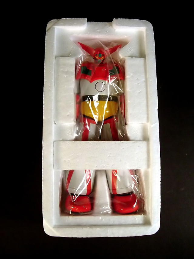 - il contenitore in polistirolo chiuso dall'abituale tappo in cartoncino all'interno del quale, protetto dalla bustina in plastica di rito, troviamo il nostro gx-52 completo di testa ed avambracci. Immancabili i fermi in polistirolo a bloccare il modello nel suo alloggiamento, uno all'altezza delle gambe,e due in corrispondenza degli arti superiori..