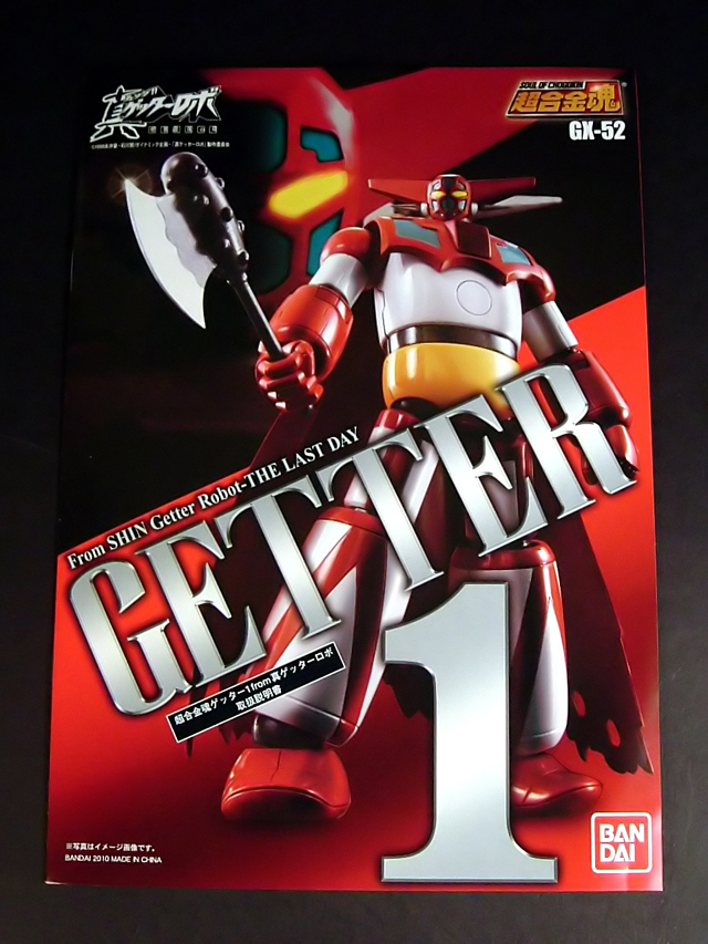 Gx-52, ossia nuovo soc, ennesimo getter. Sulla scia del predecessore gx-51 Getter Dragon Bandai prosegue nella produzione di soggetti direttamente tratti dalla fortunata serie anime "Shin Getter Robot, Armageddon" e questa volta lo fa con un robot per il quale diventa obbligatorio un confronto con l'omonimo sfornato anni addietro in diverse varianti dalla ormai sempre più latitante Aoshima. Stiamo parlando del Getter 1 così come compare nella suddetta serie animata. Il modello, annunciato lo scorso settembre, è stato immesso in commercio a fine gennaio 2010 per la gioia degli amanti dei getter e dei gokin ricchi in metallo e allo stesso tempo posabili visto che anche in questo caso si è ricorsi ad una concezione strutturale che ricalca quella di soc come i precedenti gx-45, 47 e 51, in tutti i sensi, ivi comprese le dimensioni particolarmente minute, vero neo di queste ultime realizzazioni Bandai. Ma procediamo con ordine.......