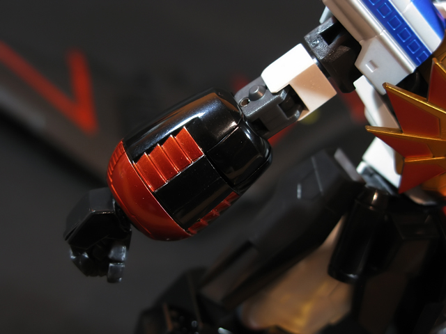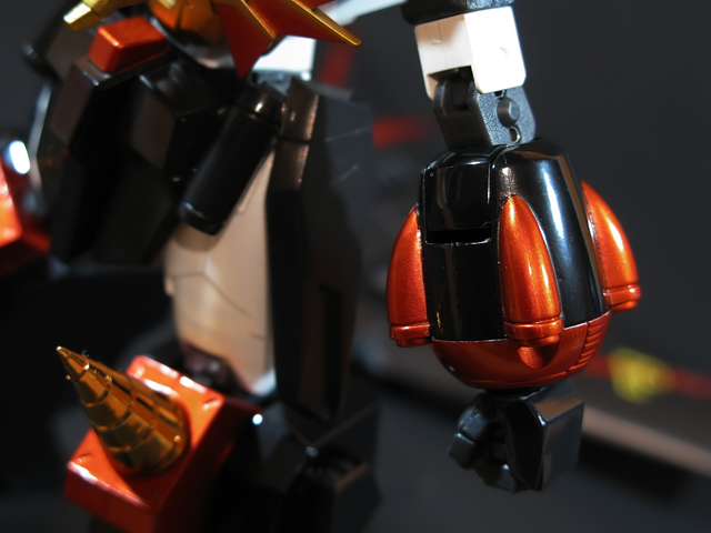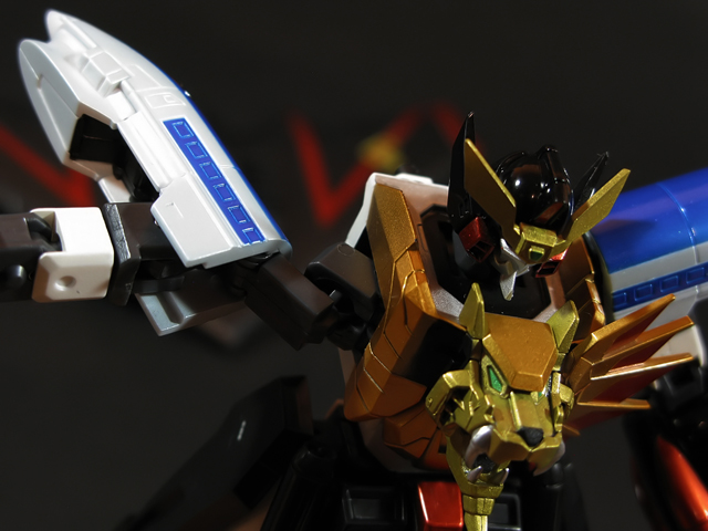 Verniciatura buona e ben stesa su tutto il modello e sugli accessori, nella mia copia non ho riscontrato sbavature o difetti di nessun genere, molto bello il logo GGG sulle ali proprio come nell'anime.