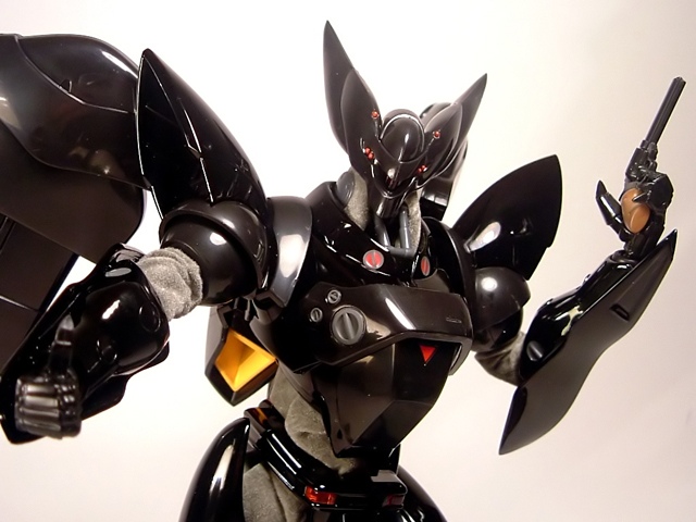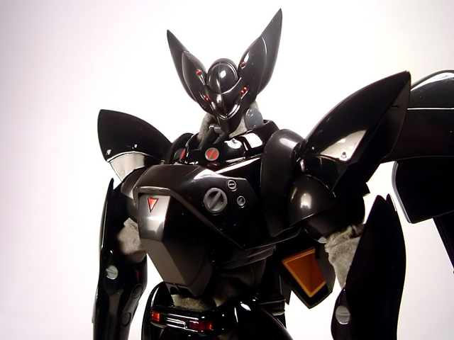 Una volta sollevato il coperchio del contenitore di polistirolo, appare un massiccio robot nero che,appena preso in mano ed estratto risulta pesante e diverso dai classici robottoni giapponesi:tutte le parti dell'armatura sono colorate in nero lucido mentre le articolazioni sono rivestite da un tessuto vellutato grigio; le parti in plastica (spalle, testa, back pack) hanno lo stesso colore delle parti metalliche cosi come dello stesso colore risultano i vari tipi di mano/pugno e le ali;la verniciatura risulta ben fatta in ogni parte; il tessuto delle articolazioni ben inserito.Sul torace e sulle spalle troviamo stampati dei "Tappi" grigi di varie dimensioni e dei triangoli rossi in stile aeronautico;la testa presenta lo schermo visivo in plastica rossa trasparente.Il modello esce dalla CMS con i pugni chiusi montati ma come accessori troviamo :due artigli aperti, un artiglio chiuso con pollice alzato (il segno dell'Ok...o dell'autostop), due spure con 9 e 10 tappini per chiudere i buchi delle viti presenti nell'interno degli avambracci e delle gambe,le due ali, una pistola a tamburo (la stessa dell'Av-98) e la mano per impugnarla;nella verisone Aqua Unit, troviamo due propulsori acquatici al posto delle ali ed un artiglio con la testastrappata della seconda unità Av-98 della polizia al posto di pistola e mano per impugnarla;Contrariamente al contenuto degli Ingram, non c'è alcuna basetta espositiva.Le ali si montano sul back pack montato sulla schiena; la parte che si inserisce al back-pack presenta degli snodi dentati