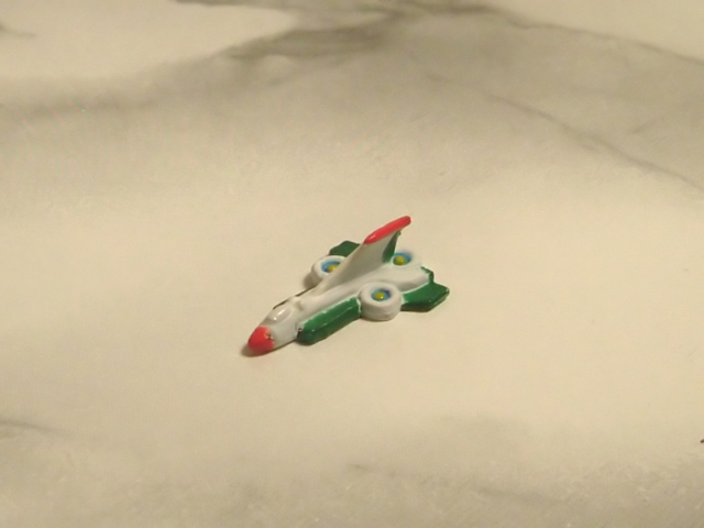 - Grande blister in plastica trasparente in cui troviamo alloggiato il robot in conformazione aereo, i due alettoni superiori di coda da applicare sul retro dell'aereo stesso e, in una bustina di plastica trasparente (ironia della sorte proprio là dove non ve ne era bisogno) le miniature dei tre mezzi di supporto, un piccolo missile per simularne l'uscita dal petto del robot, un missile grande, una scia che riproduce il fumo della propulsione da attaccare al missile grande stesso per simularne il lancio, un carrellino su cui appoggiare il missile grande. Nella parte inferiore di questo blister è presente un grosso scompartimento vuoto di cui sinceramente ignoro la funzione e che ipotizzo sia stato ideato per dare alloggio alle parti del papercraft di cui parleremo tra poco.