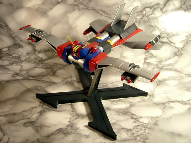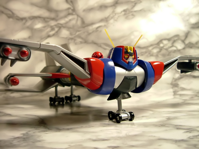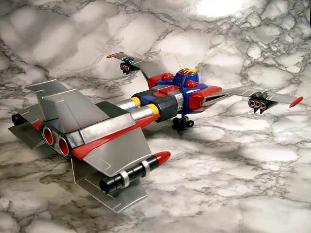 A cavallo tra il 1976 ed il 1977 Tokyo Channel 12 trasmetteva le 36 puntate di un nuovo anime robotico prodotto dalla Knack Animation a firma del Maestro Go Nagai e di Gosaku Ota dal titolo Groizer X. Sempre nota come una delle opere minori di Nagai, Groizer X (noto anche come Gloyzer X o Gloizer X), narra le vicende dell'enorme robot convertibile in aereo che, pilotato dal terrestre Joe Kasaka e dalla ragazza aliena Rita, combatte contro la razza aliena dei Gailariani che intendono conquistare la terra proprio a partire dal Giappone. Giunto in Italia nel 1981, quando Canale 5 ha trasmesso per intero la serie, l'anime non ha lasciato certo lo stesso segno di cartoni come i vari Mazinga, Atlas UFO Robot o Jeeg, ma si è comunque ricavato quella piccola nicchia nella memoria di noi bambini degli anni 70 per cui, quando poco più di un paio di anni fa Yamato ha annunciato la riproduzione del Groizer X come modello diecast per la serie "The GN-U ultimate super robot selection", ci siamo comunque trovati di fronte ad una immagine a noi familiare. Il modello, immesso sul mercato nella sua prima versione coi colori tipici dell'anime a fine 2007, è stato fatto seguire a distanza di pochi mesi da una seconda, improbabile variante a tiratura limitata con parti verdi ispirata alla colorazione che caratterizza il mecha nel manga su richiesta del noto shop online nipponico Hobby Link Japan. Complice lo scarso successo inizialmente riscosso dal modello ed il conseguente, drastico calo di prezzi subìto con il passare del tempo,alcuni mesi fa, anche sotto la spinta della positiva esperienza chiamata Danguard Yamato, mi sono deciso ad acquistare una copia di questo gokin, con verniciatura rigorosamente normal. Passo quindi a riferirvi la mia personalissima opinione sul gokin....