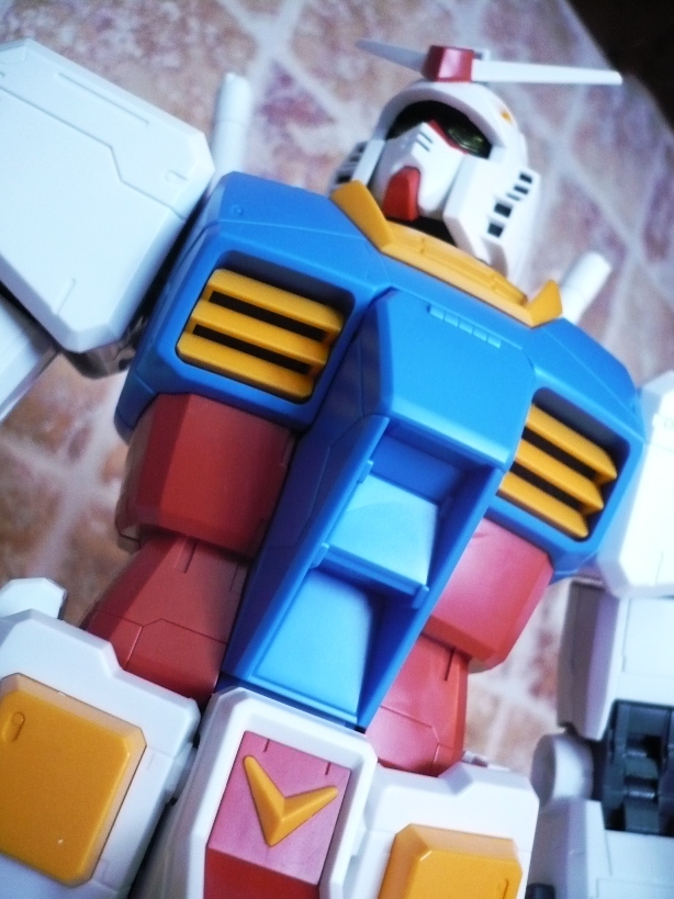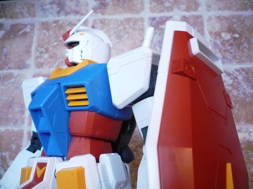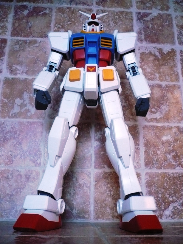 Bandai, Regina indiscussa nel panorama modellistico robotico, lancia questa nuova linea denominata MEGA SIZE MODEL, che comprenderà (se la cosiddetta avrà successo e proseguirà il suo corso) model-kit in scala 1/48.Questa linea si frappone, come fascia di prezzo, tra la Master Grade e la Perfect Grade. Infatti, pur essendo più grande di un normale PG, il prezzo è certamente minore avvicinandosi in maniera sensibile a quelli della scala più ridotta (1/100). Questo si spiega in larga parte con una minore cura del dettaglio, un assemblaggio veloce e pratico, minori accessori e soluzioni tecniche semplicistiche. Ciò non significa che il prodotto sia scarso. Tutt’altro.Come modello esordiente non poteva che essere stato scelto lui, che da tanti anni contende la leadersheep di “supereroe” preferito dai giapponesi ai vari Mazinga Z, Ultraman, Tetsujin 28 e Godzilla: il GUNDAM RX-78 2.Prima di cominciare a parlare del modello diamo un’occhiata alla scatola. Ovviamente grande (lunga 59 cm, larga 32 e alta 12) e sempre molto curata nella grafica esterna, così come Bandai c’ha sempre abituato. L’interno della confezione non si discosta per nulla da quello di qualsiasi altro kit presente nel mercato. L’unica differenza forse sta nella divisione, grazie ad un cartoncino piegato, in 3 scomparti, ma non mi ritengo certo un “kittologo”, perciò può darsi che tale soluzione sia stata già adottata precedentemente, magari con i PG. La differenza si nota eccome, invece, guardando i blister. Se nei vari MG i pezzetti e i pezzettini sono una moltitudine, qui non è così. Soluzioni semplicistiche, come ho scritto sopra. Non fatico a credere che molti amanti del gunpla possano storcere un po’ la bocca davanti a ciò. Tanto per fare un esempio, per assemblare tutti gli snodi delle ginocchia si impiegano sì e no 2/3 minuti, mentre per quanto riguarda un MG, per esempio, ne occorrono 10 per un solo snodo. Ciò è permesso in pratica dall’unione di 2 blister fra loro senza dover prima staccare gli sprue. Per essere più chiaro: un blister “maschio” (dove vanno inserite tutte le parti in PVC che formano gli snodi) e un blister “femmina” si uniscono semplicemente fra loro. Dopo di che si procede allo stacco dei vari sprue. Qui ho riscontrato una curiosità, che vorrei spiegare velocemente. Nel pratico libretto d’istruzioni, alla “voce” numero 1 sei invitato a staccare dal primo blister una specie di “beccuccio” (non so descriverlo altrimenti, comunque lo vedete nelle foto), che da un lato ha la classica forma di una spatola (la cui utilità spiegherò dopo) e dall’altro un becco che serve per staccare gli sprue. Non avrei scommesso 2 centesimi sulla funzionalità di tale marchingegno, ma mi son subito ricreduto ed ho riposto le mie piccole tronchesi. Si infila il beccuccio nello sprue, si fa leva e il pezzo si stacca senza esitazioni, lasciando pochi segni, che poi vengono tolti con un cutter.