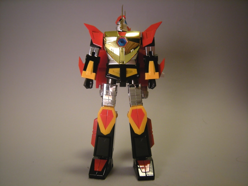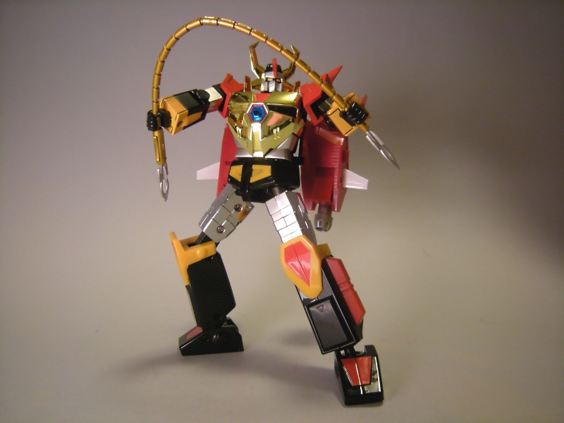 Gyakuten-Oh é sicuramente - sia come fattura che come studio ingegneristico - uno dei migliori modelli di CM's. Il robot é molto pesante e metalloso, nonché dotato di snodi e posabilità discreta. Va detto che probabilmente questa posabilità é semplicemente il risultato della presenza degli snodi necessari alla trasformazione, e ingegneriosticamente perfettibili. Per fare un esempio, sarebbe stato molto più efficace per l'esposizione se lo snodo a sfera dei piedi fosse stato realizzato in modo da poter essere esteso, aumentando l'inclinazione degli stessi. Questo a voler essere pignoli. Ad ogni modo si tratta di un oggetto davvero paragonabile ai primi Soul of Chogokin di Bandai (d'altronde i vari GX01 e GX02 originali non facevano molto movimenti in più). Se avete l'occasione di comprarlo, non tiratevi indietro. Ne rimarrete di sicuro soddisfatti. Ovviamente, come fatto notare, ci sono diversi dettagli che potevano essere realizzati meglio, ma nel complesso si tratta di un modello che convince davvero.
