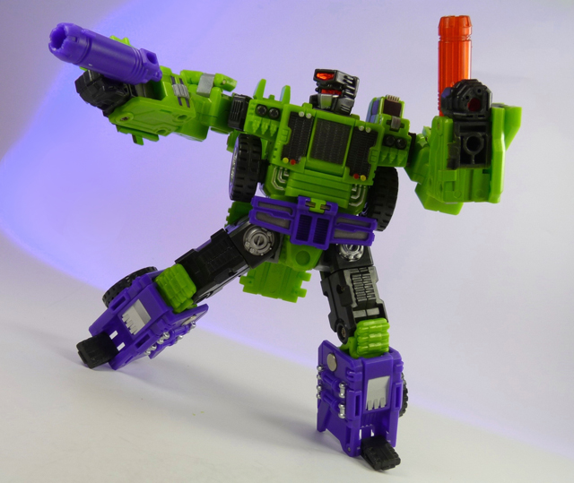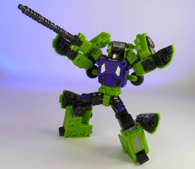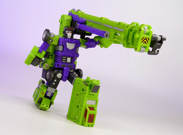 Ottima l’idea di poter posizionare l’enorme gru sulla spalla di Dr Crank e, soprattutto, di poter trasformare l’ingombrantissimo bicchiere di Madblander (la parte girevole della betoniera) in una vera armeria ambulante… a spicchi! Tutte le bocche di fuoco sono poi agganciabili al robot.