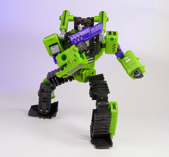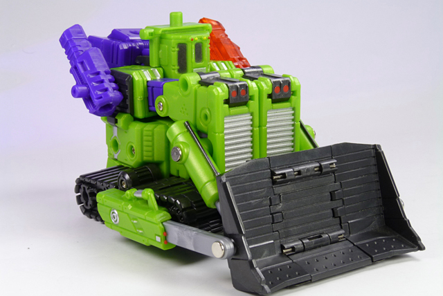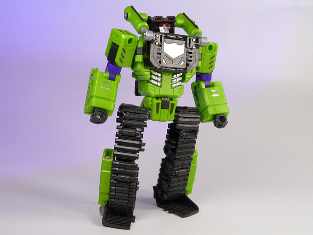 Ben studiate e riuscite anche le proporzioni, con quei cingoli trasformati in braccia leggermente lunghe che conferiscono un leggero effetto gorillesco, perfettamente adeguato alla brutale ignoranza tipica del combiner.