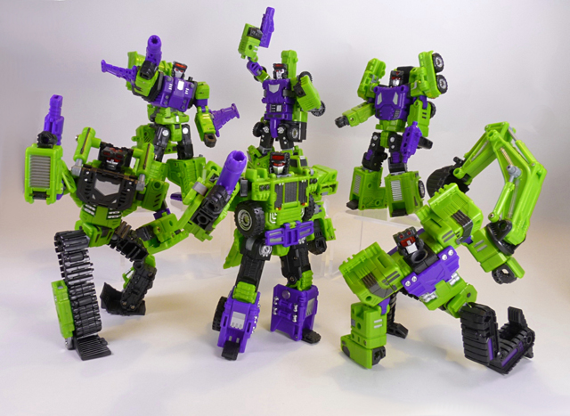 Ci sono diversi episodi, nella celeberrima saga dei Transformers, che rimangono stampati nella memoria molto più degli altri, penso che converrà con me buona parte degli allora ragazzini che dividevano i pomeriggi tra i compiti e le scazzottate televisive di Commander e Megatron. Come nel sedicesimo episodio della serie giappo-americana, quando i sei operosi Constructicons, minacciati dai Dinorobot, optarono per un’unione reciproca per formare il primo, e forse più amato, combiner Transformer che si fosse mai visto sugli schermi: il grande Devastator! In questa modalità, la raffinata intelligenza individuale dei sei robot, a tutti gli effetti dei tecnici, veniva sorprendentemente dimezzata - ma forse è un eufemismo… - a favore di una potenza e brutalità che lasciò di stucco gli increduli fan della serie, non certo abituati a vedere gli amati Dinorobot presi a sonore pedate o a constatare come anche Tiran, alla stregua di una palla da baseball, potesse essere oggetto di un home run.