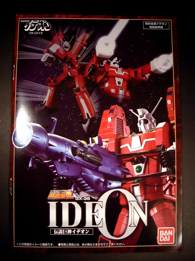La scatola è decisamente grande (42 x 28 x 13 cm), e bella pesante. Sull'anteriore è immortalato in primo piano l'Ideon nell'atto di impugnare l'enorme Ideon Gun mentre sullo sfondo, in alto, si vedono i 3 mecha A, B e C che lo compongono, sfreccianti in conformazione di volo. Nell'angolo in basso a destra, accanto al logo Bandai, fa mostra di se l'adesivo celebrante il trentennale Sunrise. Nell'angolo diametralmente opposto, come da tradizione, abbiamo i loghi Soul of Chogokin, Sunrise e della serie anime e il codice del modello. Sul retro, intorno alla bellissima immagine centrale dell'Ideon nella posa di lancio dell'all directional missile, sono distribuiti tutta una serie di piccoli riquadri illustranti i mecha che compongono il robot e la possibilità di conversione in due conformazioni ciascuno, gli accessori in dotazione e la basetta espositiva.
