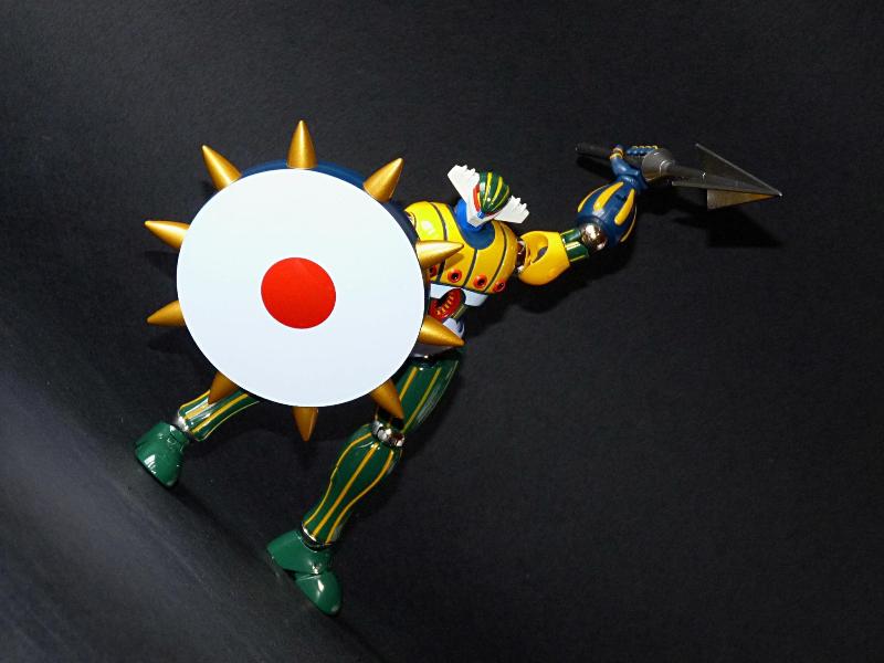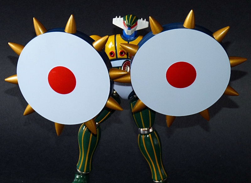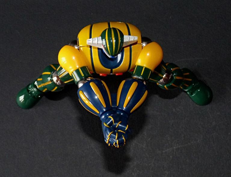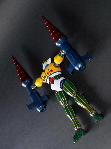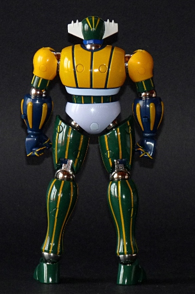 16 cm di altezza per 320 grammi di peso denotano una buona quantità di metallo nella composizione del modello, si nota subito quando lo afferrate perché trasmette quella bellissima sensazione di consistenza e compattezza tipica dei modelli meno giocattolosi. La cosa è curiosa, visto che parliamo di un prodotto che basa buona parte dei propri equilibri su interazioni magnetiche, e naturalmente una buona bilanciatura e distribuzione dei pesi è fondamentale per la buona riuscita di questa tipologia di chogokin, sempre così difficoltosa da realizzare con risultati decenti.