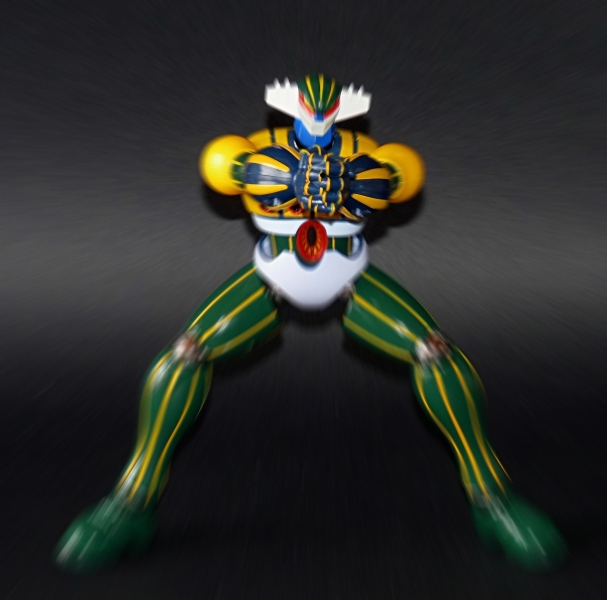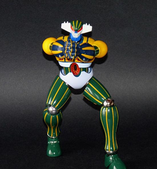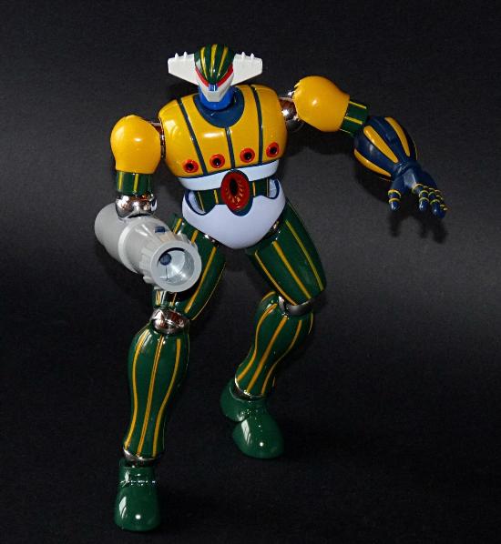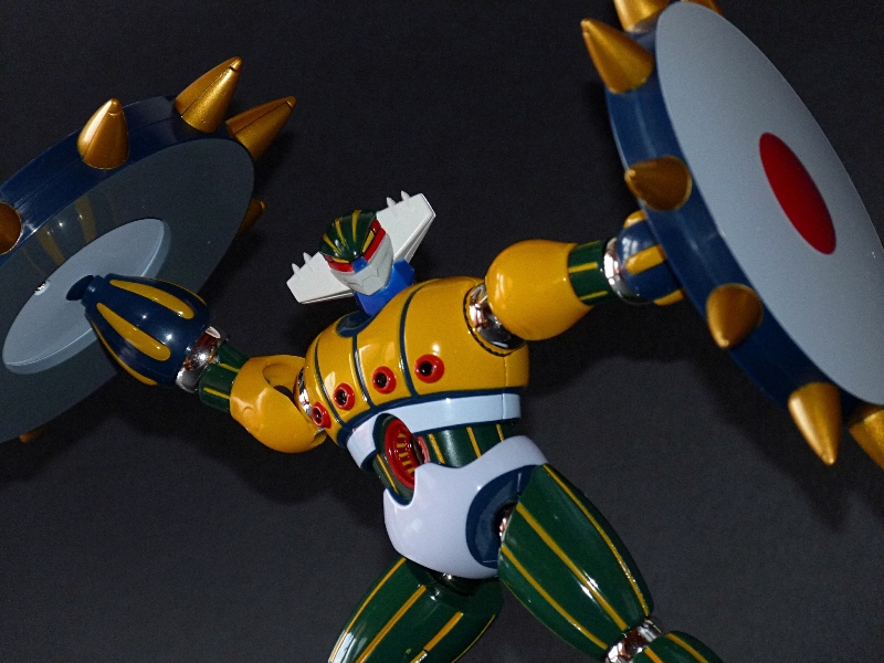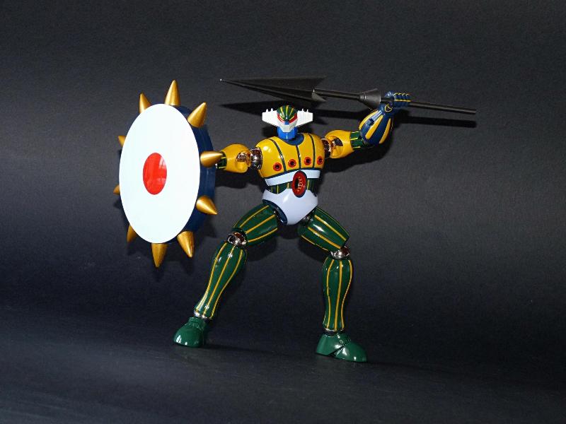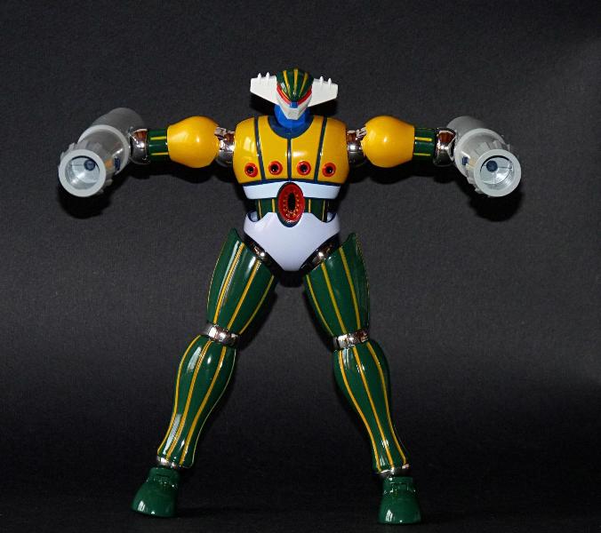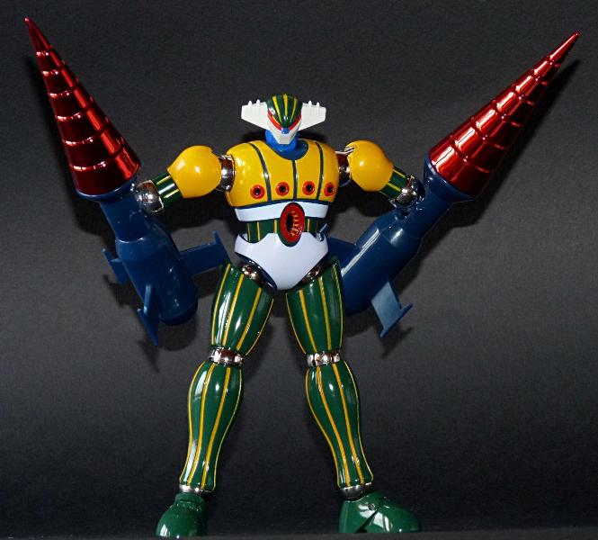 Quello che invece questi personaggi non condividono in egual misura è una degna e completa rappresentazione nel mondo del modellismo robotico. Infatti, mentre il mercato è invaso da quantità ormai ubriacanti di Mazinger per tutti i palati, per il nostro amatissimo Jeeg non esisteva praticamente un vero modello die cast moderno: riflesso di un successo commerciale globale sicuramente non esplosivo come quello di alcuni suoi fratelli nagaiani, costui si deve accontentare di vecchi, ma gloriosi giocattoli come il sempreverde Takara, che tra l’altro ha una ristampa tutt’ora in vendita, dei mini metal Marmit, di altre figure e di statue, oltreché di una schiera inossidabile di creazioni custom autoprodotte dagli appassionati più accaniti (e bravi). Mancava però un modello di metallo paragonabile ai SOC di Bandai, moderno, posabile, di qualità.