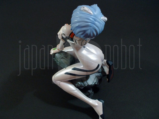 La trovata di Shirahige di sostituire il classico disco piedistallo con una roccia scolpita a somiglianza dell' Eva 00 (ovvero il mecha di Rei) è la vera innovazione e caratteristica di questa serie di pvc.Questa roccia volendo vedere è quasi meglio della stessa Rei, dettaglio incredibile per un piedistallo e ottimamente verniciata.Difficile all' inizio centrare Rei a cavalcioni su di essa e le istruzioni allegate non aiutano di certo.Faccio notare che Rei è l' unica delle bimbe che è realmente seduta sull' eva e ne ha il dominio stringendone la testa....... Dopotutto è lei che.......