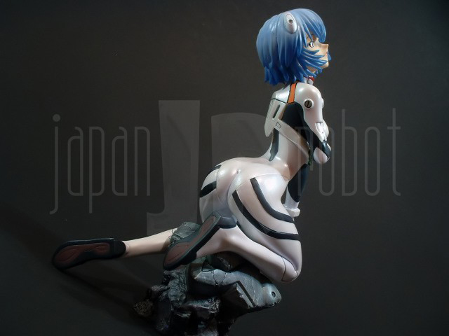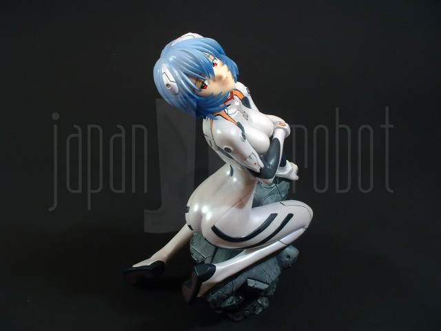 Rei, personaggio Otaku simbolo di Evangelion alla quale sono state dedicate negli ultimi 15 anni credo il più alto numero di statue e statuette nella storia, era un personaggio che si prestava ad essere un guscio vuoto per il suo padrone, poiché essendo priva di personalità, si piegava al suo volere obbediente e remissiva.Vera innovazione che ne fece uno stancil su cui sono stati clonati un infinità di personaggi sia dal punto di vista caratteriale che puramente visivo.Ma questa Rei del nuovo ciclo cinematografico non è la solita, infatti acquista un carattere e si definisce un suo spazio.Shirahige Tsukuru ha svolto un eccellente lavoro scolpendo questa Rei, ma a mio avviso, imitando lo stile di Yoshiyuki Sadamoto (di cui mostro anche 2 settai)senza però esagerare con le sproporzioni ma centrando in pieno il nuovo essere di Rei.