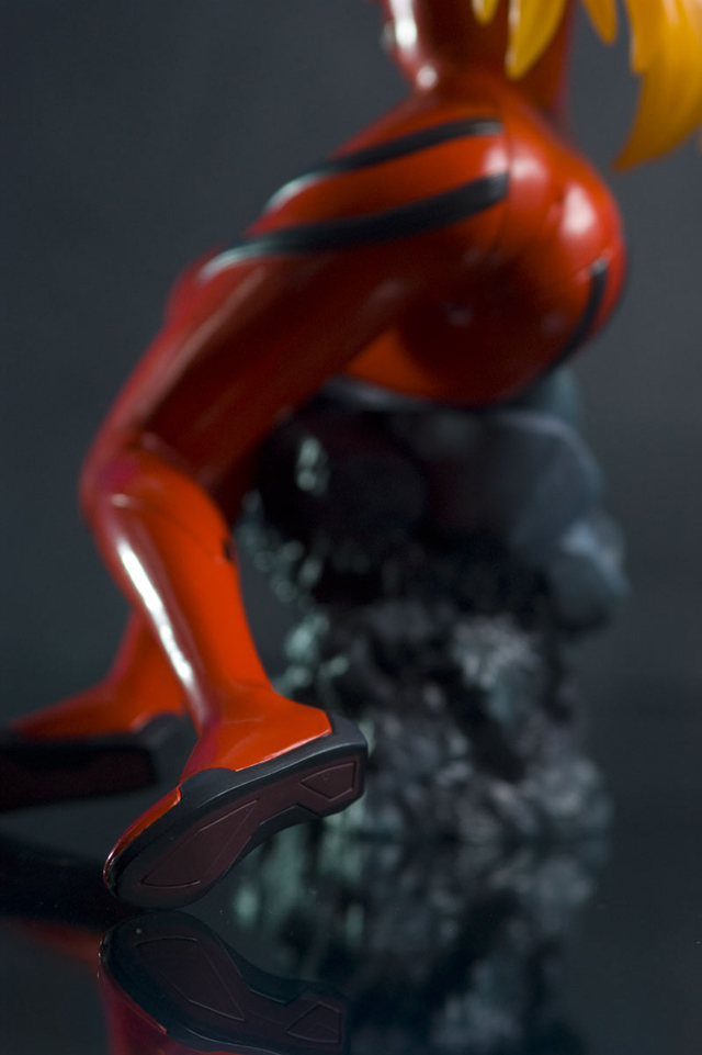 Come con Rei il plug suit è verniciato in modo sincero ed i dettagli seguiti benino senza strafare, Misato era un altro pianeta.I capelli sono traslucidi e sfumati con colori semiopachi all' attaccatura.Ecco, qui i capelli essendo lunghi rendono molto meglio che in Rei, sono il pezzo forte del pvc.Per Caratterizzare il viso con un espressione arrogante (tipica del personaggio) si è scelta una colorazione ancora una volta anemica; (la mia preferita, al bando i centri di abbronzatura) ma troppo esagerata tanto da risultare più pallida di Rei e la cosa non va bene.