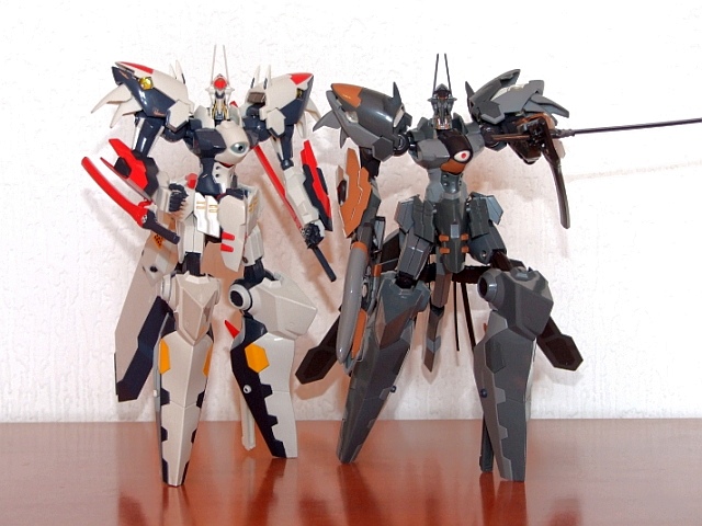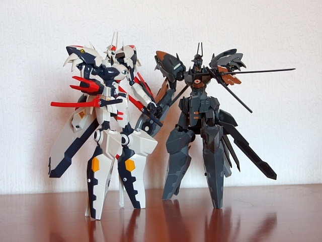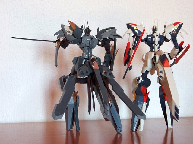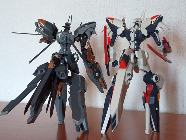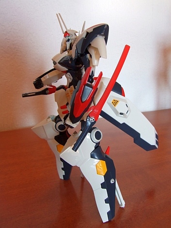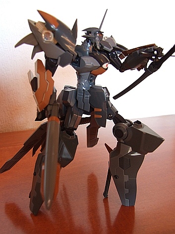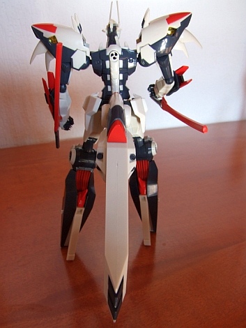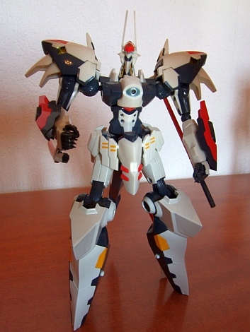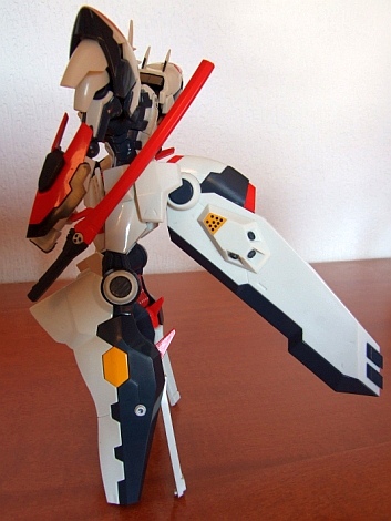 I Machina hanno un Design molto particolare che richiama in parte le unità "Eva", i Mobile Suit e Aquarion e la prima cosa che si nota nel Linebarrels è la mancanza dei piedi e delle caviglie; la seconda cosa che si nota sono i foderi delle spade fissati con un perno sulla parte p osteriore di ogni braccio e, per finire, la presenza di una coda/booster/stabilizzatore!I colori del Linebarrels sono : il bianco (che ha predominanza) il grigio scuro ed il rosso ai quali si aggiungono il nero,l'azurrino della cabina di pilotaggio ed il giallo presente sulle spalle e in qualche particolare sulle anche, gambe e coda.estratto il Linebarrels dal suo alloggiameto, ci si rende conto che abbiamo tra le mani un modello molto posabile ma anche molto delicato malgrado sia un un mix tra metallo e plastica : le corna sulla testa ed i foderi sono molto inclini ad avere vita breve data al loro posizione, i rostri sulle spalle invece risultano esere letali per le dita; non ultimo, lo snodo del gomito non trasmette alcuna sicurezza, conviene sembre usare le due mani per piegare e ruotare l'arto.Per quanto riguarda la verniciatura e le cura dei particolari, direi che CMS ha lavorato bene, infatti troviamo due tappini per chiudere i buchi nell'interno coscia, le spade non si inseriscono nei foderi, ma si possono togliere i manici che fanno da tappino ai foderi fissati alle braccia, cosi da riprodurre fedelmente l'impugnatura della spada avendo il fodero vuoto:c'è da notare però che spesso nell'anime la spada sinistra finisce nella mano destra e viceversa perciò...se le tenete estratte ed impugnate entrambe nessun problema altrimenti il fodero della spada non estratta interferisce con quello della spada impugnata! beh, se estraete la sinistra, fatela impugnare dalla mano sinistra e viceversa ;) i pugni semiaperti presentano il pollice ruotabile in maniera da consentire l'impugnatura delle spade o del fucile;sul retro delle gambe, a livello dei polpacci, è possibile far uscire due puntoni (sembrano due tacchi a spillo, ndr)che appaiono anche nell'anime per dare stabilità a Linbarrels quando fermo in piedi;la coda si collega al retro del modello, andando ad agganciarsi nell'apposita fessura posta al livello dell'osso sacro;la coda ha una funzione di bilanciamento oltre che di terza gamba e di booster visto che Linebarrels molto spesso combatte sollevato da terra (fluttuando o volando); anche se lo riproduce fedelmente, il fucile che si apre (ricorda un pò quello usato dal Turn.A Gundam) è propio brutto, spesso si tende a montarlo al contrario a causa della sua forma.Come già accennato, possiamo decidere se esporre Linebarrels in modalità normale oppure in quella "Overdrive" :per la seconda dovremo montare sulle braccia le protezioni aperte e la seconda coda in dotazione, aperta a ventaglio,ed alzare la parte superiore delle spalle.Se il linebarrels risulta un giusto mix tra metallo e plastica, entrambe le code sono interamente in materiale plastico,però c'è uniformità di colore tra questi pezzi grossi ed il resto del modello, brava CMS.Da notare che i polsi sono parte integrante dei pugni e delle mani - il perno si inserisce nel braccio e non viceversa -,sono di gomma rigida e si inseriscono in materiale rigido non gommmoso, evitando cosi di trovare il pugno/mano incollatied impossibilitati a ruotare o ad essere sostituiti (come nelle donne robot di Bandai, per fare un esempio).La basetta con il braccio snodato è quanto mai benefica per questo modello, visto che Linebarrels è un robot destinato al combattimento ravvicinato e l'ottima posabilità permette di ricreare molteplici pose, con e senza armi!Esporre Linebarrels come un soldatino di guardia è veramente desolante! sbizzarritevi a trovare qualla che più vi piace;il braccio snodato si inserisce nell'apposita fessura posta sotto quella dove si inserisce la coda;da notare che anche la coda ha uno snodo che le consente posabilità (ricordatevi che serve come bilancere e terza gamba nel caso non usiate la basetta d'esposizione).Se la verniciatura e la cura dei particolari è molto buona (guardate il logo riprodotto sulla guardia delle spade e sulla schiena di Linebarrel), un nota negativa riguarda gli snodi usati per tutto il modello :nessuno di questi è a scatto, pertanto non è consigliabile giocare molto con le pose e ricordarsi di far attenzione quando si piega il gomito (è sottile, molto delicato) mentre un'ottima escursione hanno testa, collo e gambe.Come detto in precedenza, la mobilità del modello è ottima, abbiamo uno snodo al bacino ed uno al torace, le braccia possono essere incrociate liberamente sia sul petto che sulla schiena...insomma, sarà un "Brave Gokin" ma discende totalmente dalle Action Figure (probabilmente è la moda dei modelli del 2009).Per quanto rigurada il Mode-b (spesso indicato come Black), oltre alla presenza delle figurina, la differenza è il colore:il bianco viene sostituito da un colore grigio molto scuro (NON è perciò il nero) per ripodurre la colorazione assunta da Linebarrels quando in esso vi sono entrambi i suoi Factor e la guida è nella mani di "Emi Kizaki", almeno inizialmente; Linebarrels mode-b ha prestazioni speriori alla versione normale, ma questo ha un costo, la maggior potenza esaurisce le risorse energetiche e vitali del sua Factor!il Mode-c (Lo Sterminatore di Machina) presenta una colorazione rossa tendente al rosa, riproponendo la colorazione che assume Linebarrel specialmente nell'ultimo episodio, durante lo scontro finale con le forze extradiensionali che tentano di passare sul nostro piano.Oltre alla differente figurina di "Emi Kizaki", troviamo una lama da montare sul fucile per ripordurre l'Executor che chiuderà la partita con Big Boss decretando la sconfitta degli extraterrestri che ci vogliono assimilare;sia il Mode-b che il Mode-c sono a tiratura inferiore rispetto alla normal version: la novità CMS è che questa volta non ha prodotto versioni con colorazioni per questo o que