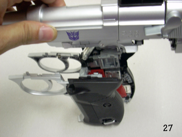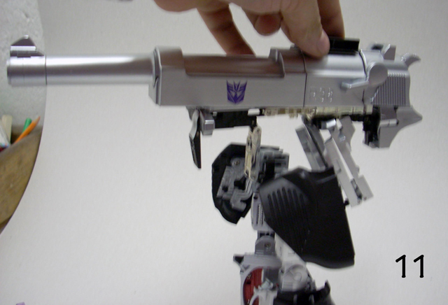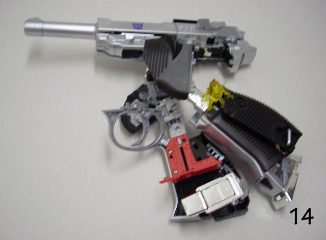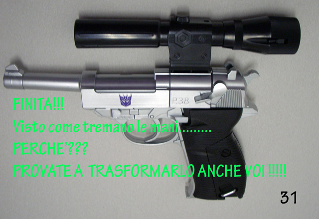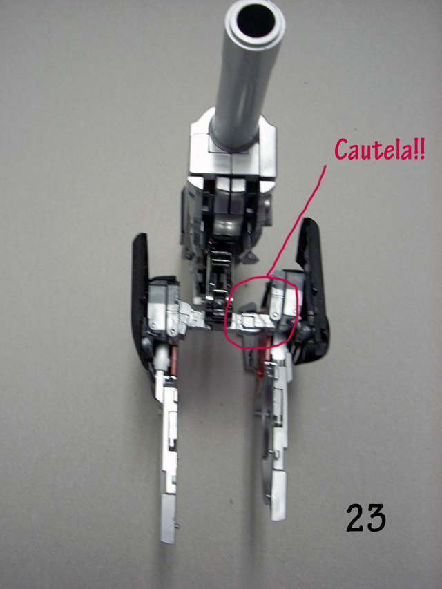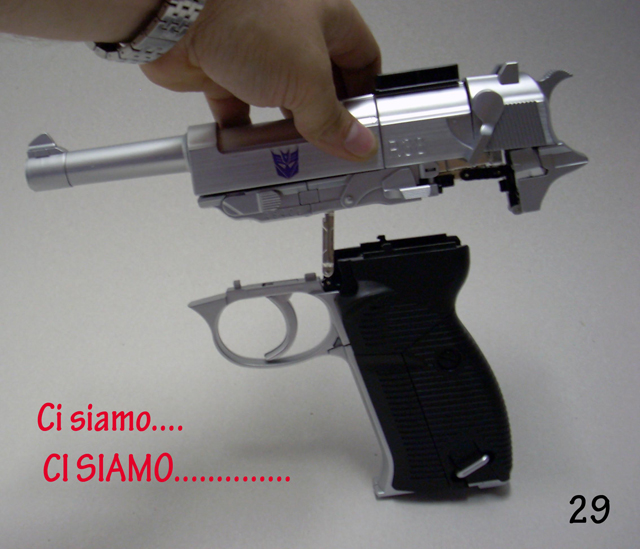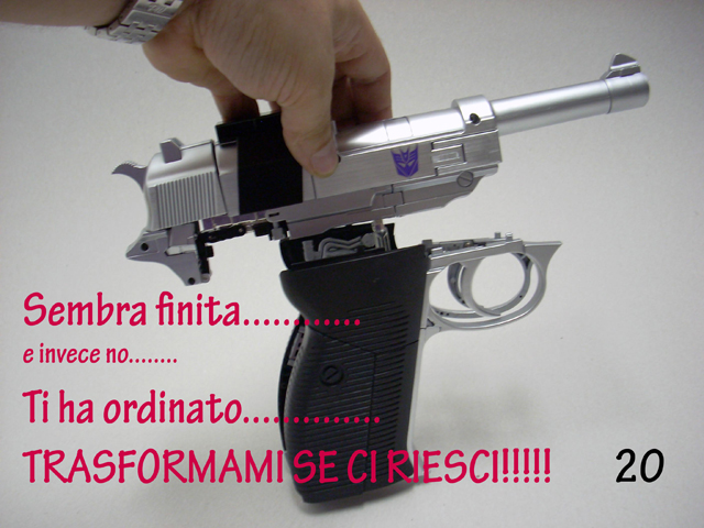 Il misero libretto allegato non è molto chiaro e a volte induce nell' errore.Usandolo in abbinamento alle foto allegate a questa recensione sarà possibile una trasformazione più serena.Se avete venti minuti liberi incominciate a trasformare Megatron partendo dalla testa, fate attenzione alla foto n. 3, molti spezzano il robot a metà perché cercano di piegarlo senza prima estrarre il trittico cromato.Andate in scioltezza fino al punto 16bis ricordandovi di aprire lo sportello e di notare quanto segnato dalle forbici in figura 15.