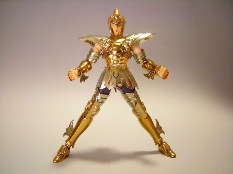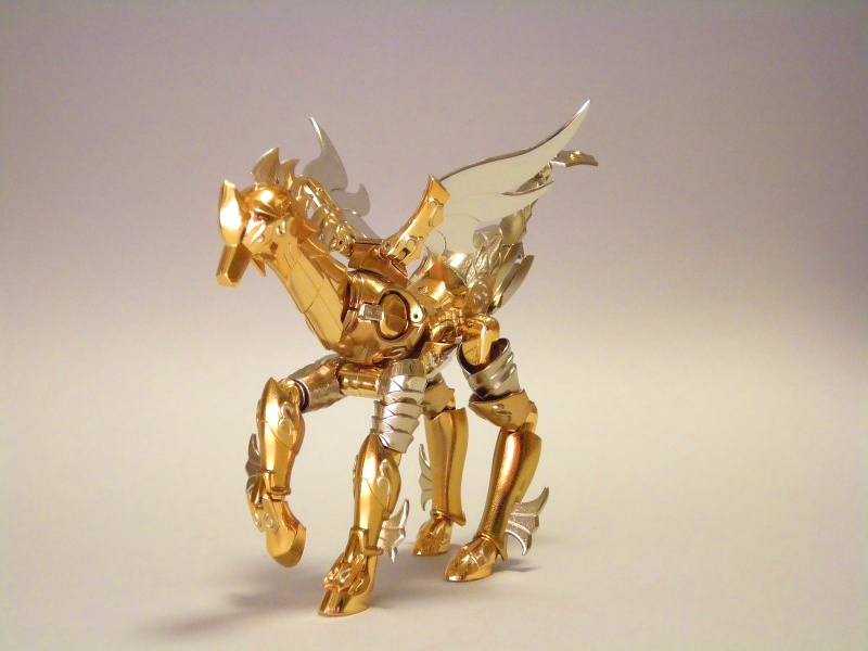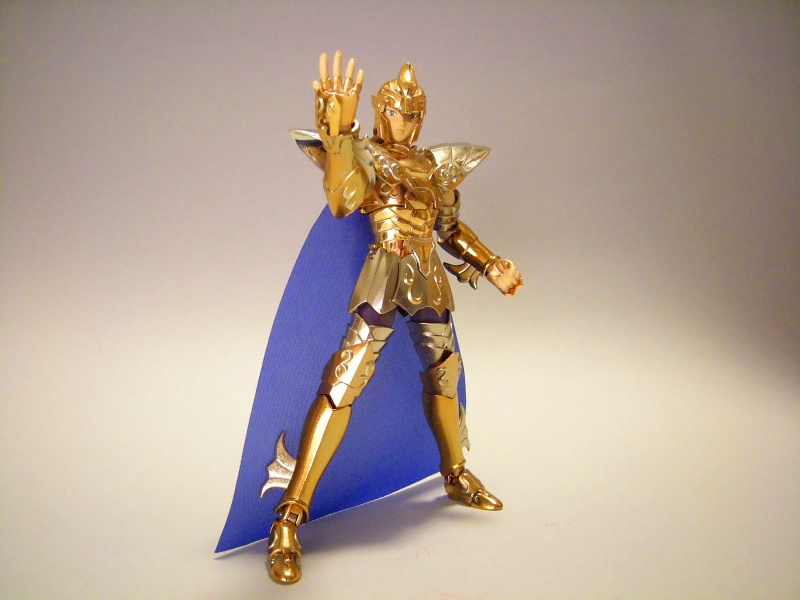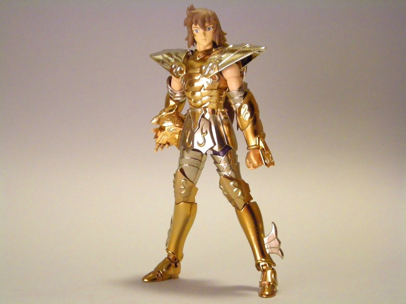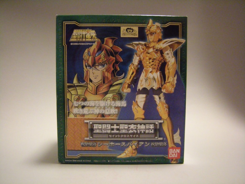 Il myth di Sea Horse si presenta nella classica scatola a libro con vetrinetta. Il montaggio delle parti dell’armatura sul personaggio non presenta problemi. La linea dei Marina è stata sviluppata fra quella dei Gold Saint e degli Specter, percui ha soluzioni tecniche che fanno da ponte fra le due caste. Le armature sono molto più snelle e calzanti delle gold, con elmi studiati per essere molto aderenti al viso, ma gli snodi sono ancora di vecchia generazione. Per quanto riguarda Sea Horse, c’è da segnalare un problema cronico che riguarda tutti i myth che hanno armature molto pesanti, soprattutto alle gambe. Essendo gli snodi delle anche a semplice attrito, non è possibile allargare più di tanto le gambe, pena la caduta del personaggio. Il myth è dotato di un secondo volto rappresentante Baian nell’atto di soffiare con la bocca, posa che identifica il suo colpo segreto “God Breath”, ed una coppia di mani per la posizione della barriera. In generale è un soggetto molto fedele alla controparte animata, salvo i capelli che appaiono più una reinterpretazione di Bandai che non una trasposizione di quanto si può vedere sullo schermo. In dotazione al personaggio è presente anche un mantello blu (nell’anime in realtà appariva bicolore, da una parte bianco e dall’altra blu), oggetto che lo caratterizza molto, dato che solo tre Marina ne sono forniti.