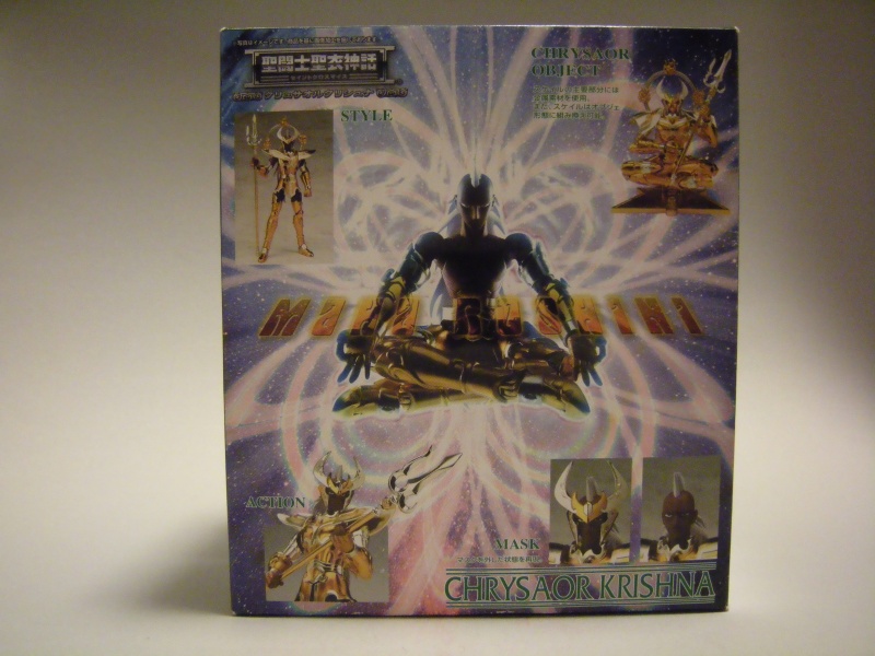 Krishna di Chrysaor è il terzo dei Generali Marina ad affrontare un Bronze Saint, più precisamente Dragon Shiryu, ed è il guardiano della colonna dell’Oceano Indiano. La scatola è sempre la solita classica a libro con vetrinetta. L’object di Chrysaor si ispira al mitico Crisaore, figlio di Poseidone che come indica l’etimologia del suo nome è “armato d’oro”. In sintonia con il mare che domina viene dotato anche di elementi induisti, come la particolare aureola che ne circonda il capo.