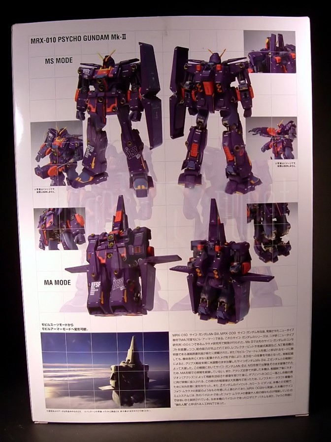 Dopo l'MRX-009 Psycho Gundam, Bandai arricchisce la serie Fix Figuration Metal Composite con quello che ne rappresenta la naturale evoluzione, l'MRX-010 Psycho Gundam Mark II. Nell'anime Mobile Suit Z Gundam, lo psycho MKII rappresenta infatti la versione migliorata e con una potenza di fuoco di molto accresciuta dalla abbondante dotazione in cannoni (tutte le bocchette gialle che vedete distribuite sulle varie parti del corpo) del precedente Psycho Gundam, caratterizzandosi anch'esso per un sistema di interazione uomo-macchina di tipo psicologico tale da garantire al pilota la possibilità di un controllo totale del robot attuabile attraverso i soli pensieri e per la possibilità di convertirsi in fortezza volante (in altre parole anche questo è trasformabile in una specie di climatizzatore portatile di gusto esteticamente opinabilissimo). Se già considerate imponente il primo Psycho preparatevi alla recensione di questo enorme bestione, un modello in assoluto tra i più alti della mia collezione ed una ulteriore dimostrazione della bontà qualitativa e della validità tecnica dei prodotti della serie Metal Composite.