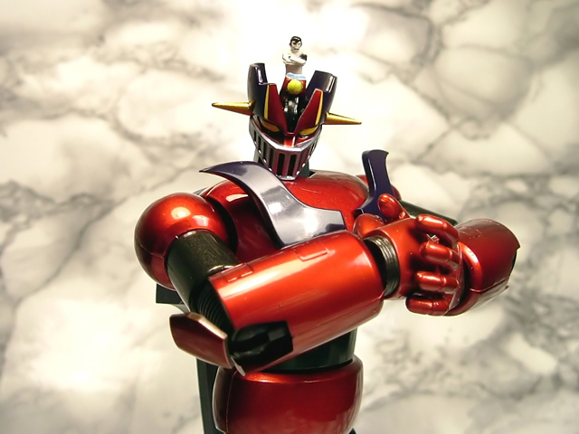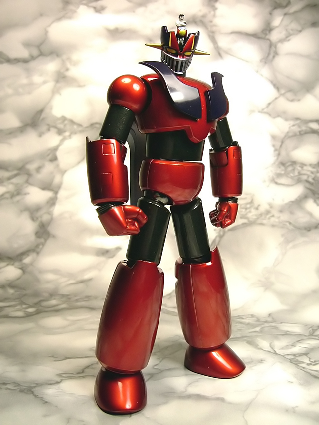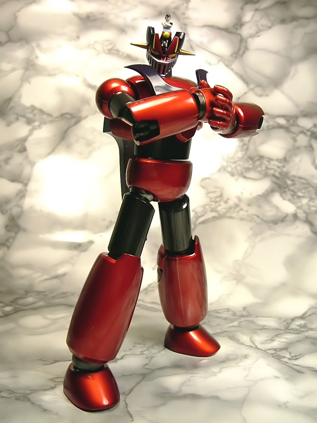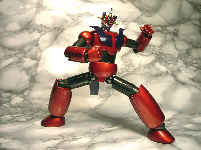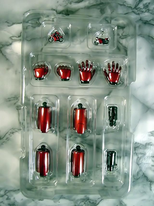 - due blister in plastica trasparente impilati l'uno sull'altro, il primo contenente la basetta espositiva e la rampa applicabile sulla schiena del robot, il secondo contenente due avambracci, due sistemi sparanti per la simulazione del rocket punch, due avambracci adattabili a questi ultimi, due paia di mani (un paio chiuse a pugno ed un paio a dita aperte e piegate), le due moto agganciabili alla testa del robot, una pilotata da Kenzo Kabuto e l'altra pilotata da Tetsuya.