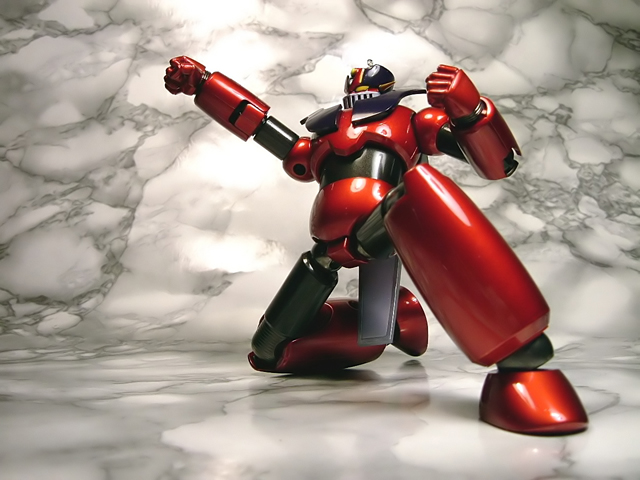 apparizione del robot nell'anime non aiuta sicuramente a dotarlo di chissà quale equipaggiamento... Anche la basetta è chiaramente riciclata, presenta infatti centralmente l'incavo per l'applicazione del sostegno per le pose di volo del gx-45.