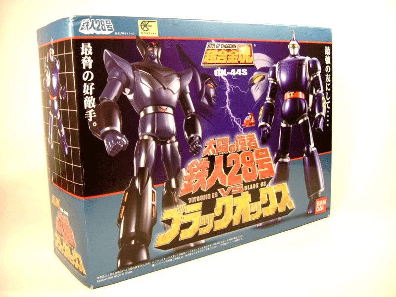 Annunciato ormai da tempo, arriva in Giappone alla fine del mese di novembre 2008 (e in Italia nel mese di dicembre, giusto in tempo per essere piazzato tra i doni sotto l'albero di Natale), l'ultimo nato in casa Bandai Soul Of Chogokin, il Tetsujin 28 Go, versione riveduta ed aggiornata del Tetsujin 28, già uscito come gx-24 in versione soc e papà di tutti i robottoni che dal 1963 (anno della sua nascita) in poi si sono di lì a poco succeduti scatenando una vera e propria tendenza. Tetsujin 28 Go, noto in Italia come Super Robot 28, è una storia articolata in una cinquantina di episodi che differisce sensibilmente dalle serie anime robotiche di quegli stessi anni caratterizzate da mecha con dotazioni, in termini di armamenti, più o meno ricche; infatti il Tetsujin 28 Go, così come il suo celeberrimo predecessore, si limita a combattere semplicemente a pugni e calci senza ricorrere all'uso di armi. I protagonisti della serie sono praticamente gli stessi del prequel, il T28, come nella serie del 1963 è infatti pilotato a distanza da un ragazzino di nome Shotaro tramite l'utilizzo di una valigia contenente i comandi del robot. Forse memore delle esperienze passate per cui il riscontro in termini di vendite del gx-29 Black Ox, storico avversario del T28, non è stato pari a quello della sua nemesi buona, Bandai ha deciso in questo caso di proporre 2 differenti versioni di questo modello e precisamente il gx-44 (corrispondente al solo Tetsujin 28 Go) ed il gx-44s (un vero e proprio set che,oltre al T28, contiene anche l'avversario Black Ox). Con questa scelta si è evitato di proporre il Black Ox come uscita soc indipendente e il conseguente rischio di un insuccesso in termini di vendite senza scontentare, allo stesso tempo, tutti coloro che desiderano affiancarlo al suo avversario. Personalmente ho deciso di acquistare il set completo, ed è di questo che nel corso della recensione vi andrò a dare informazioni, si parte............