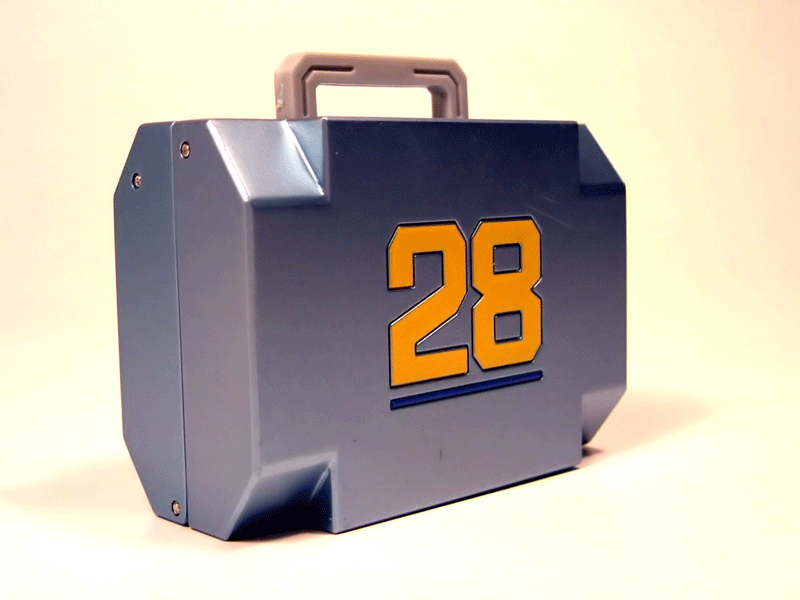 - Contenitore in polistirolo all'interno del quale troviamo, protetti dal contatto col polistirolo stesso grazie a una bustina in plastica, i 2 robot (T28 a sinistra e Black Ox a destra). Entrambi sono assicurati da una stecchetta in polistirolo a livello delle gambe e da una mascherina in plastica trasparente nella parte alta del busto. Tra i due robot, nei rispettivi alloggiamenti all'interno delle relative bustine abbiamo dall'alto verso il basso: la testa intercambiabile del T28, la testa intercambiabile del Black Ox (con gli ingranaggi all'interno del volto scoperti) ed i reattori applicabili alla schiena del T28.