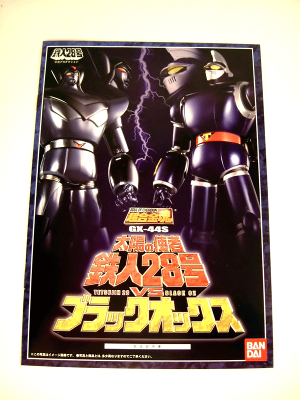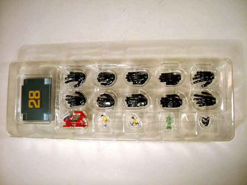 - Un blister in plastica trasparente entro cui abbiamo alloggiati: una miniatura apribile della valigetta di Shotaro, una miniatura del clipper (il piccolo mezzo volante su cui Shotaro si muove), due miniature di Shotaro (una mentre apre la valigetta, l'altra da mettere sul Clipper), una maschera applicabile sulla testa intercambiabile del Black Ox a coprire gli ingranaggi interni, una miniatura del piccolo robot di Shotaro, 3 paia di mani per il T28 (uno con dita estese per le pose da karateka, uno con dita semiflesse ad artiglio ed uno con dita aperte) e due paia di mani per il Black Ox (uno con dita estese per le pose da karateka ed uno con dita aperte).