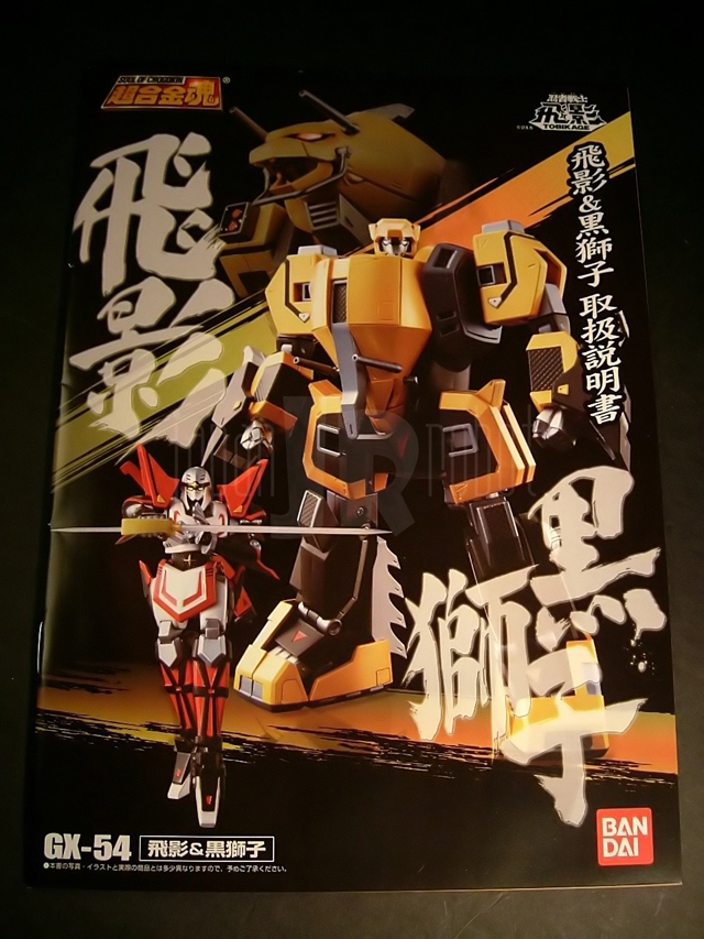 Luglio 2010, la lista si assottiglia... Il successore della "bomba" Daitarn 3 è uno tra i modelli da tempo più richiesti dagli appassionati del Sol Levante e va a ridurre ulteriormente quel gruppo di mecha maggiormente desiderati in versione Soul of Chogokin da cui Bandai ha generosamente attinto negli ultimi 4 anni. Stiamo parlando del Tobikage, o meglio di un terzo di esso. Temendo il flop economico cui l'avrebbe messa a rischio la proposta di un set enorme e conseguentemente ipercostoso, infatti, la casa nipponica ha in questo caso optato per una politica di mercato oculata e decisamente condivisibile, smembrando il progetto Tobikage in 3 soc separati, i gx-54, 55 e 56. Non a caso nell'anime, il Tobikage, mecha con le fattezze di un vero e proprio ninja (il nome della serie, trasmessa in Giappone tra l'ottobre 1985 ed il luglio 1986, è per l'appunto Ninja Senshi Tobikage, e cioè "Tobikage, il guerriero ninja"), è in grado di combinarsi con altri 3 diversi mecha antropomorfi per formare robot con le fattezze di animali rappresentati rispettivamente da un leone (Jyuuma "Beast Demon" Kurojishi o Black Lion), una fenice (Kuuma "Sky Demon" Houraioh o Phoenix Thunderhawk) ed un drago (Kaima "Sea Demon" Bakuryu o Burst Dragon). Niente di più facile, per Bandai, che proporre come gx-54 una versione trasformabile del Tobikage in coppia con il Kurojishi e, a seguire (settembre e novembre 2010) le accoppiate formate da un Tobikage non trasformabile ma iperposabile e l'Houraioh come gx-55 e lo Zerokage ed il Bakuryu come gx-56. Premesso che quindi l'uscita dovrà essere valutata nella sua globalità e che le somme potranno essere definitivamente tirate solamente a gx- 56 uscito, non possiamo certo esimerci dal dare un giudizio sul gx-54, primo modello del trio, immesso sul mercato alla fine dello scorso luglio....