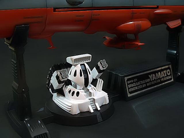 La serie è SOUL OF POPYNICA con codice BPX-01, si pensava che Bandai avesse cominciato una nuova produzione completamente dedicata alle astronavi, ma purtroppo dopo l’uscita di questo modello non fu prodotto più nulla. La scatola non è molto grande, all’interno troviamo la Yamato in un contenitore di polistirolo, accanto una scatolina con all’interno delle griglie per l’assemblaggio di alcune parti della nave, lo stand espositivo, 5 caccia, Cosmo 0, Black Tiger, Cosmo Tiger 2, e per finire un mini kit per costruire il Cosmo Cleaner da posizionare sul display stand. Nella confezione è presente un libretto illustrato che mostra tutte le funzioni del modellino e i pochi procedimenti per il montaggio delle varie parti sopraccitate.