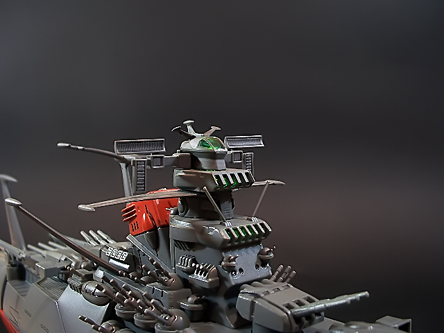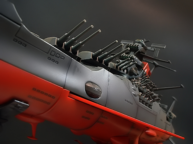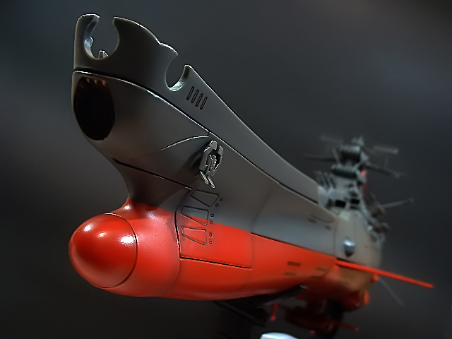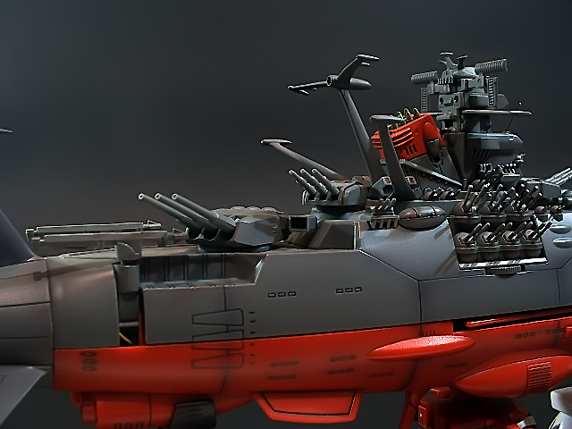 La Yamato è lunga 42 centimetri, è costruita quasi totalmente in plastica, le uniche parti in metallo sono le 5 batterie di cannoni poste sul ponte della nave, il fumaiolo centrale ed il reattore principale dei motori. Questo però non vuol dire che il modellino non goda di ottime rifiniture, esteticamente è molto bello e non presenta imperfezioni di nessun genere. La verniciatura è stata leggermente sfumata in corrispondenza delle pennellature incise sullo scafo della nave, in questo modo si è tolto l’effetto “piatto” che una colorazione liscia avrebbe dato all’intero lavoro.