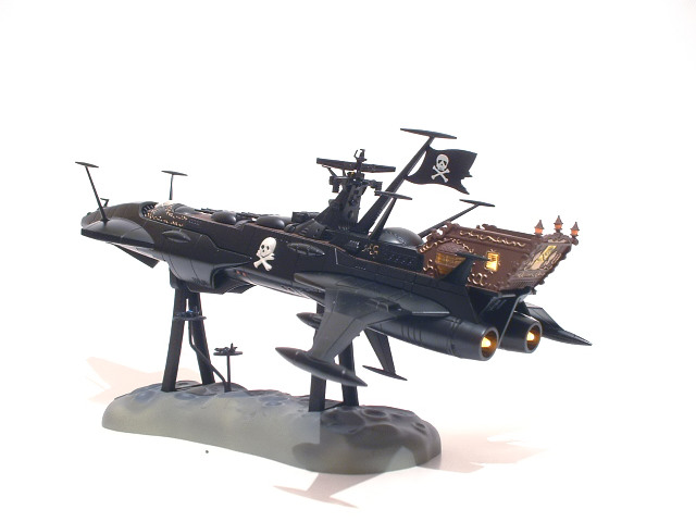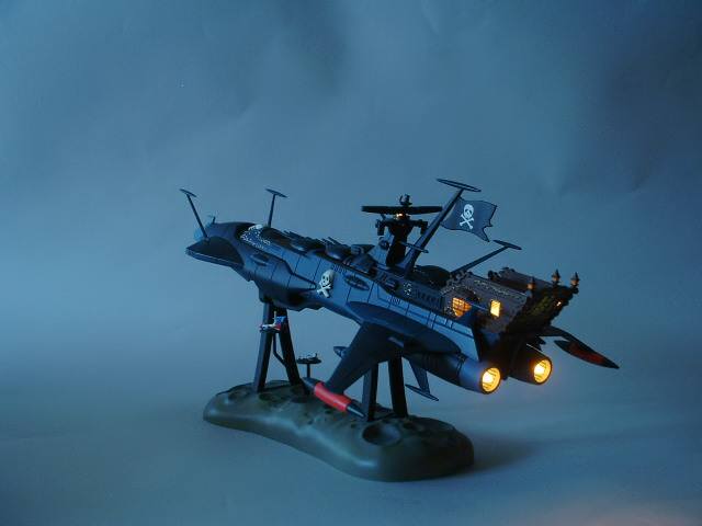 Cosa dire ancora, per gli appassionati del pirata dello spazio questa Death Shadow rappresenta la ciliegina sulla torta che mancava, personalmente l’ho attesa con trepidazione fin dalla prima foto apparsa in rete. Da sempre l’astronave di Leiji Matsumoto è nei cuori di tutti noi, Aoshima è riuscita a far rivivere il mito di Capitan Harlock con una realizzazione davvero stupenda, impedibile veramente!!! Ogni volta che mi fermo a guardare la mia vetrina mi sembra di ritornare bambino, mi sembra di sentir queste parole………Un pirata tutto nero che per casa ha solo il ciel, ha cambiato in astronave il suo velier….nel suo occhio c’è l’azzurro nel suo braccio acciaio c’è, nero il suo mantello mentre il cuore bianco è….Capitan Harlock…….Capitan Harlock………..