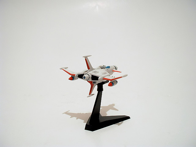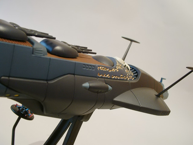 Come tradizione Aoshima il modello è quasi totalmente in metallo, il suo peso è di 780 grammi per 33 centimetri di lunghezza. Ha un’apertura alare di 17 centimetri nella parte posteriore, mentre le prese d’aria in prua hanno una sporgenza complessiva di 8 centimetri. Qualche altro dato, altezza della torre di comando 4,5 cm – altezza pennone porta bandiera 5 cm , lunghezza batteria cannoni (2 in dotazione) 4 cm – altezza antenne di prua 3 cm.