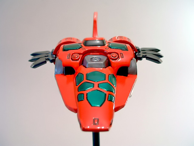 Come detto in precedenza nella confezione è presente la Getter Machine 1, molto bella esteticamente, nella parte terminale sono presenti gli stessi avambracci del Getter con i cutter laterali. La piastra pettorale qui funge da cupolino di copertura per la cabina di pilotaggio, è possibile la sua rimozione per visionare il posto di guida. Anche sulla Getter Machine gli avambracci possono essere ruotati e aperti all’esterno, questo permette una piccola simulazione di aggancio con le altre due Getter Machine. Molto pesante e quasi interamente in metallo, nella parte sottostante troviamo il simbolo circolare come quelli che sono posizionati sulla schiena del Getter, ovviamente qui il carattere è quello del numero 1.